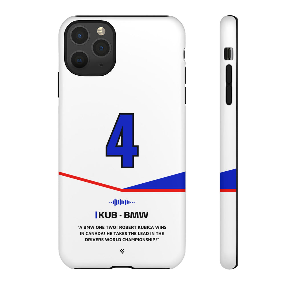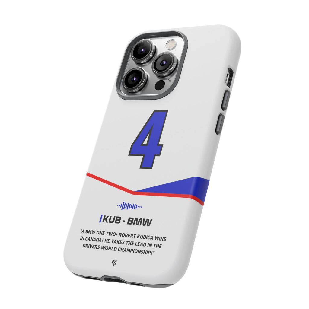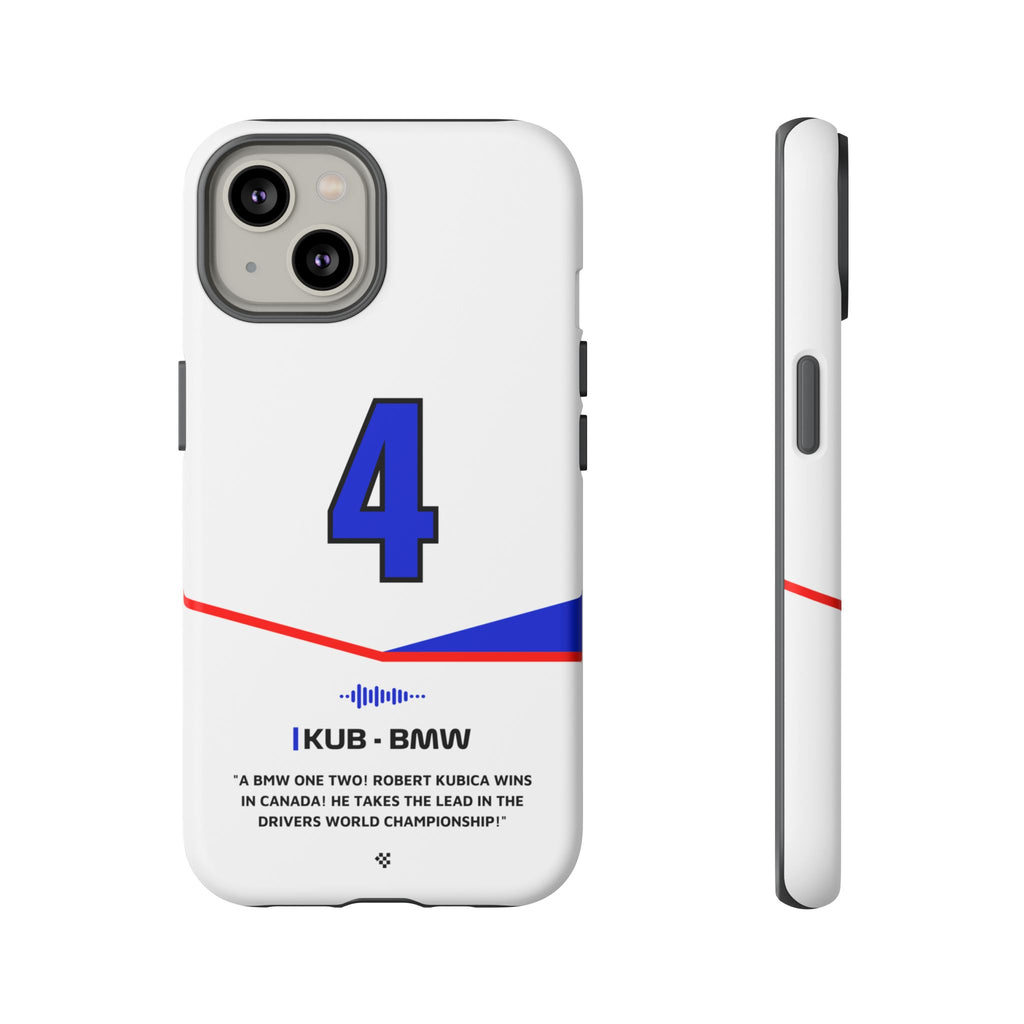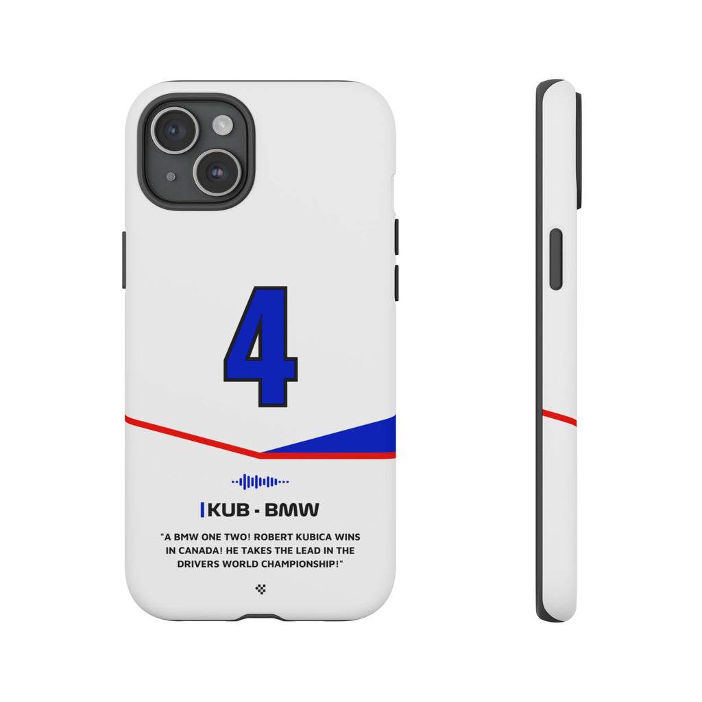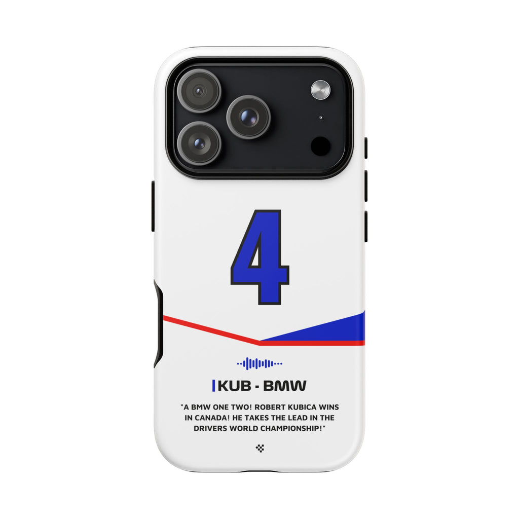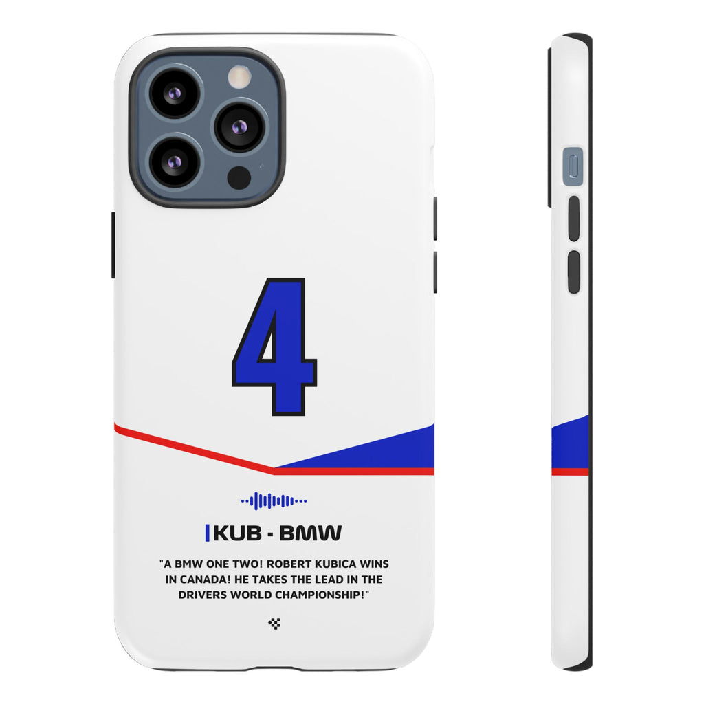 Make sure his legacy persists with the exclusive Robert Kubica F1 Legend Phone Case. It's the perfect accessory for every passionate Formula 1 and Kubica fan. Featuring Robert's iconic #4 race number and the bold 2008 BMW-Sauber team colors, this stylish phone case brings racing energy straight to your hand.