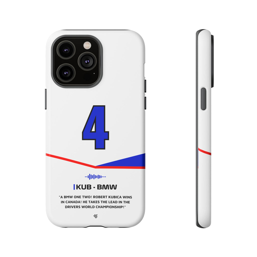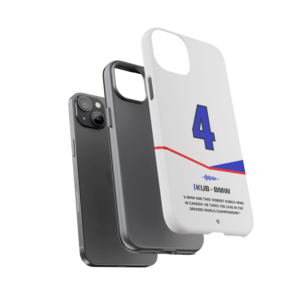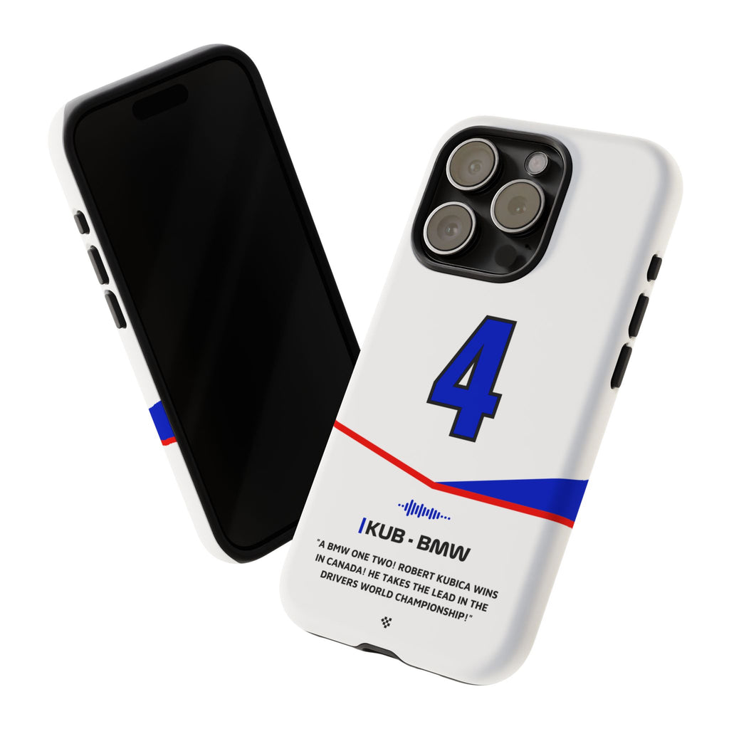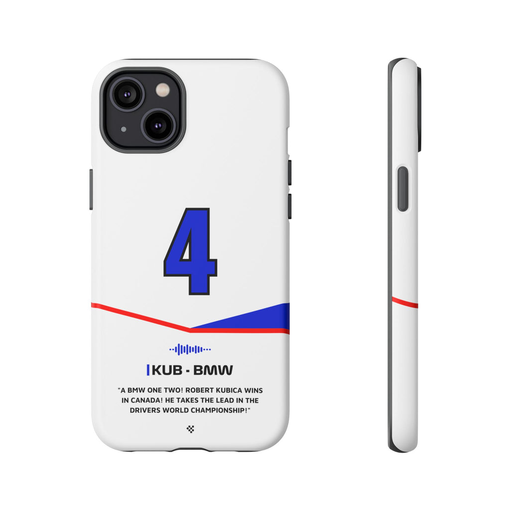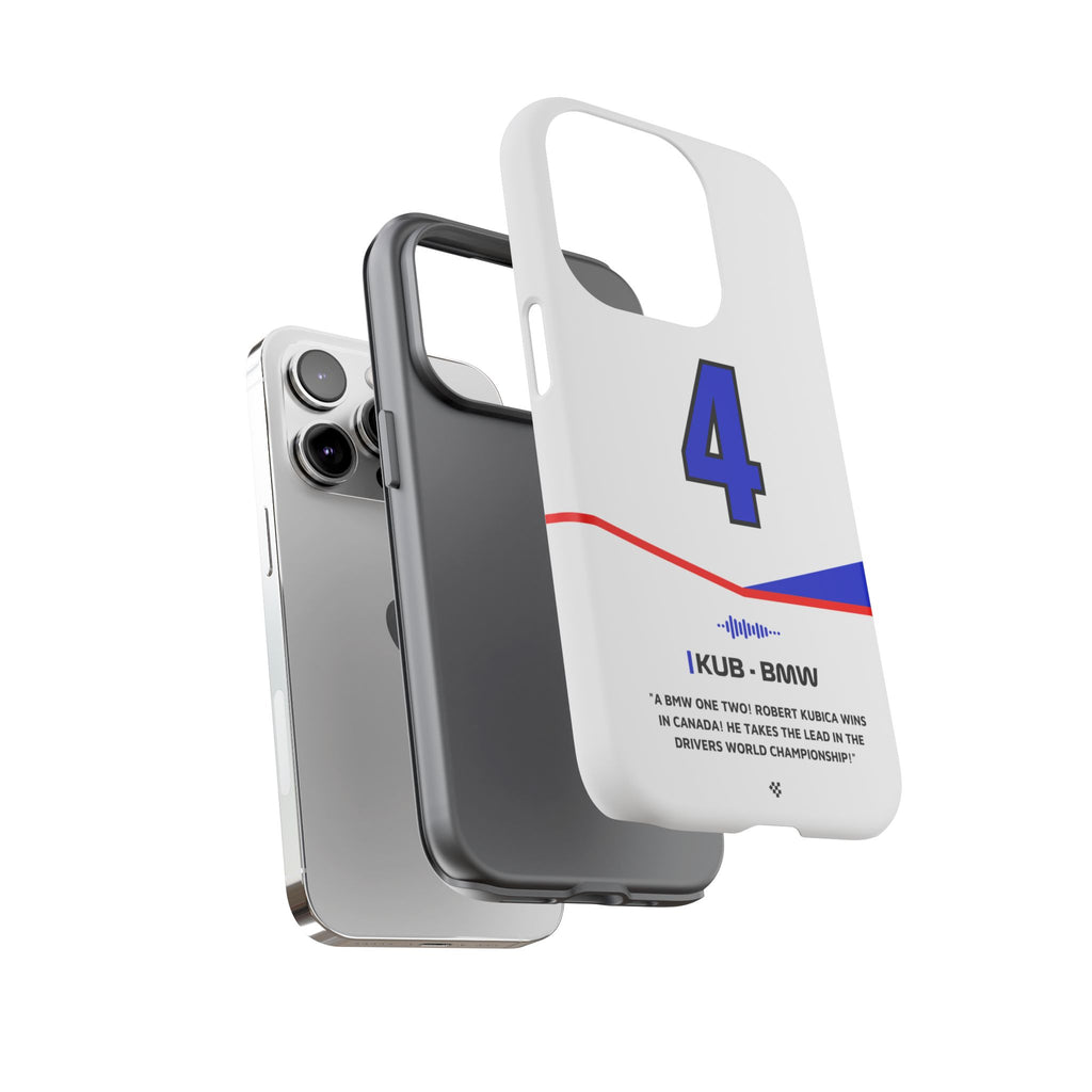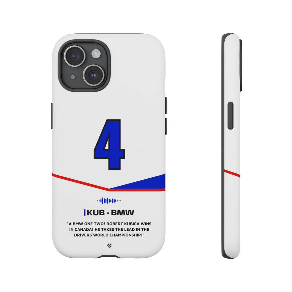 Make sure his legacy persists with the exclusive Robert Kubica F1 Legend Phone Case. It's the perfect accessory for every passionate Formula 1 and Kubica fan. Featuring Robert's iconic #4 race number and the bold 2008 BMW-Sauber team colors, this stylish phone case brings racing energy straight to your hand.