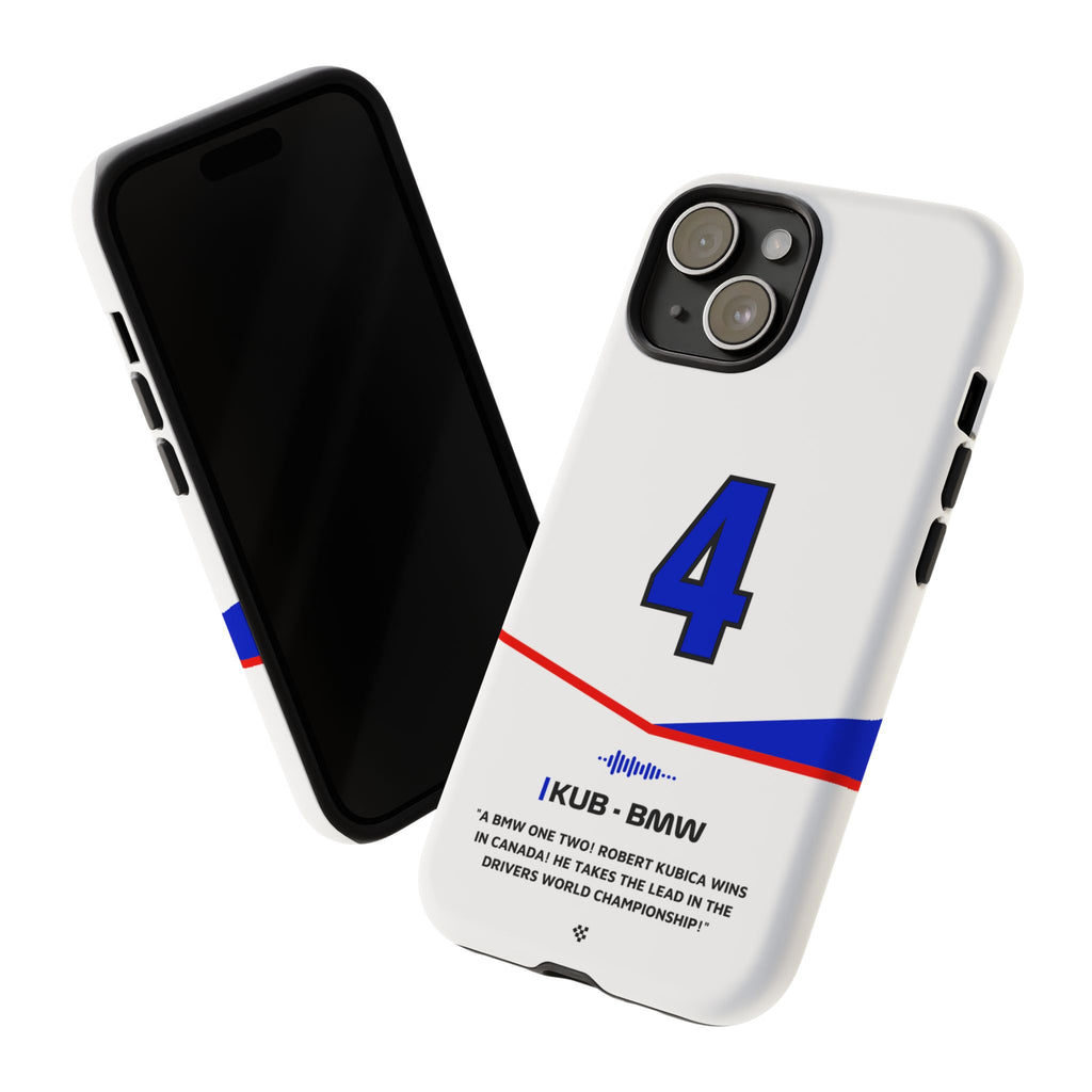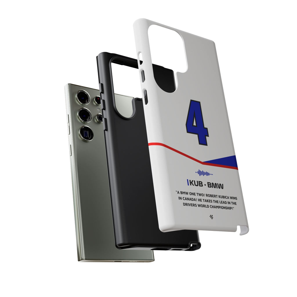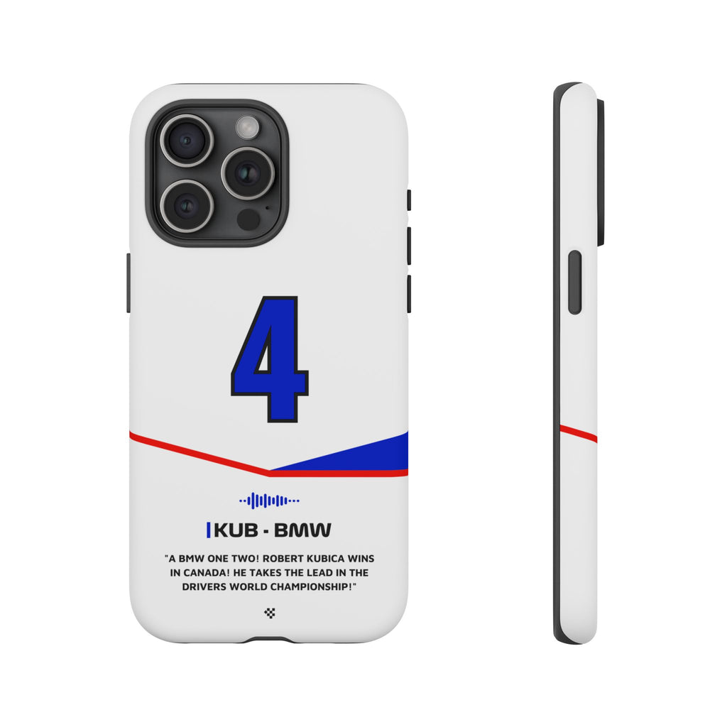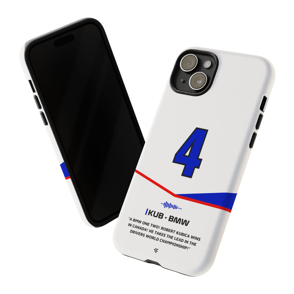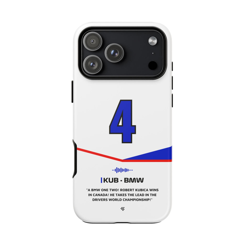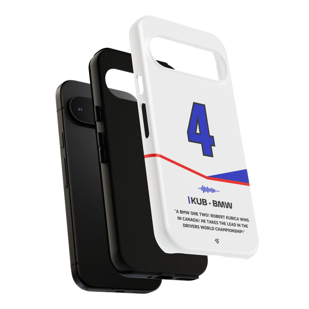 Make sure his legacy persists with the exclusive Robert Kubica F1 Legend Phone Case. It's the perfect accessory for every passionate Formula 1 and Kubica fan. Featuring Robert's iconic #4 race number and the bold 2008 BMW-Sauber team colors, this stylish phone case brings racing energy straight to your hand.