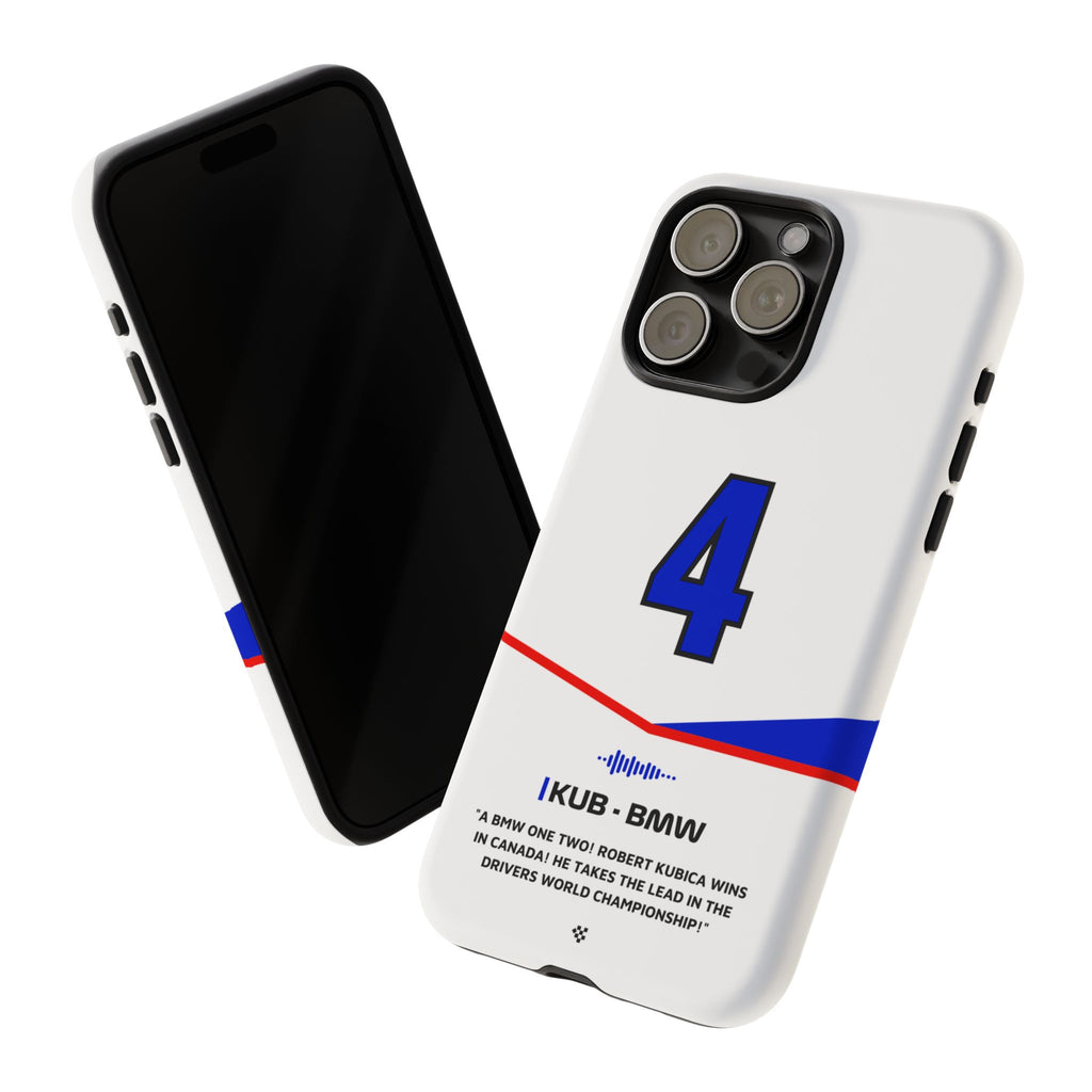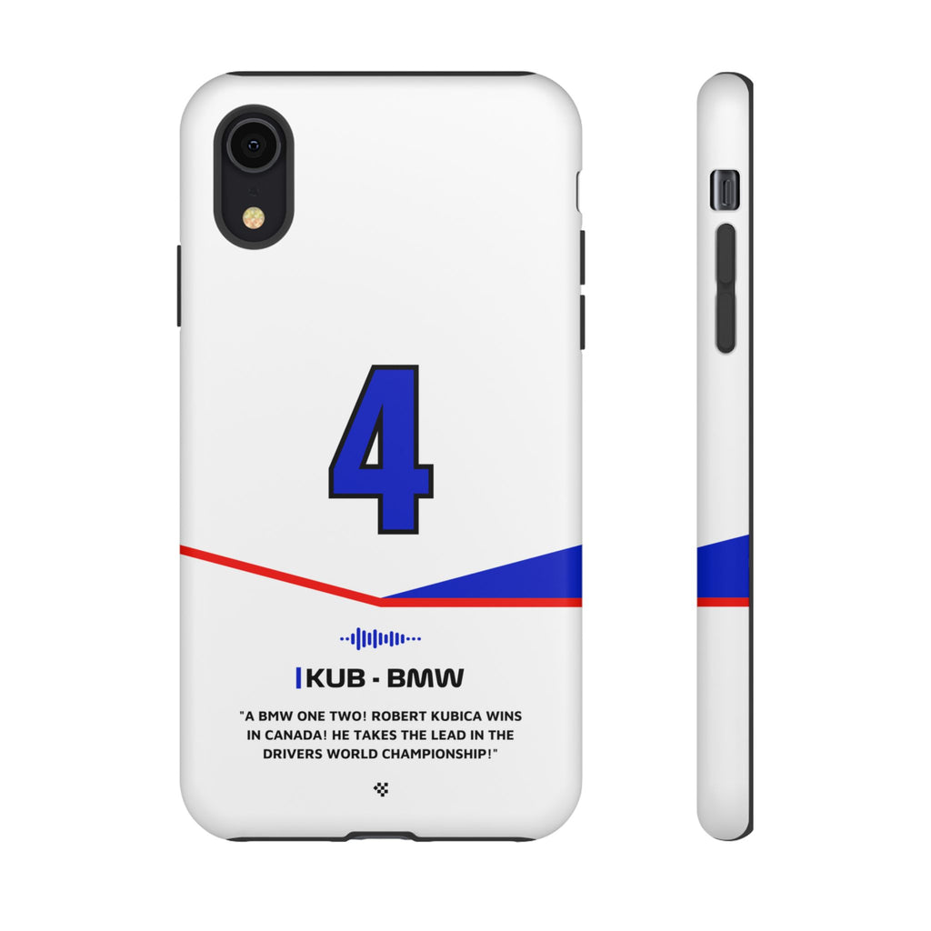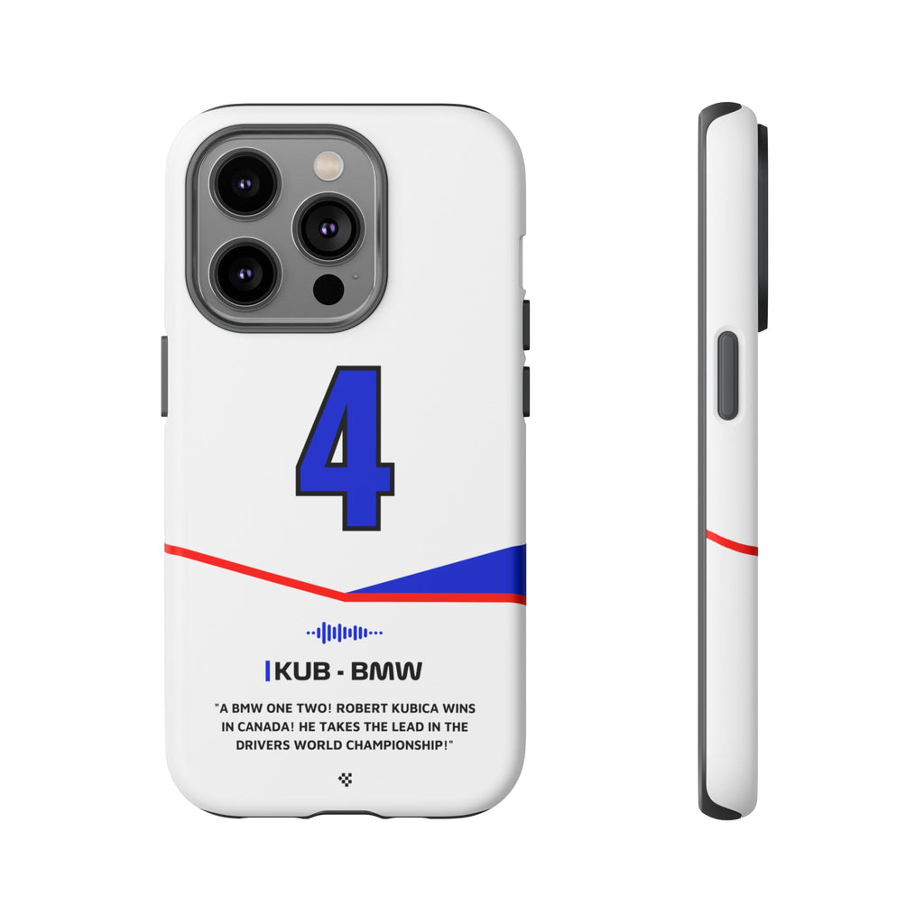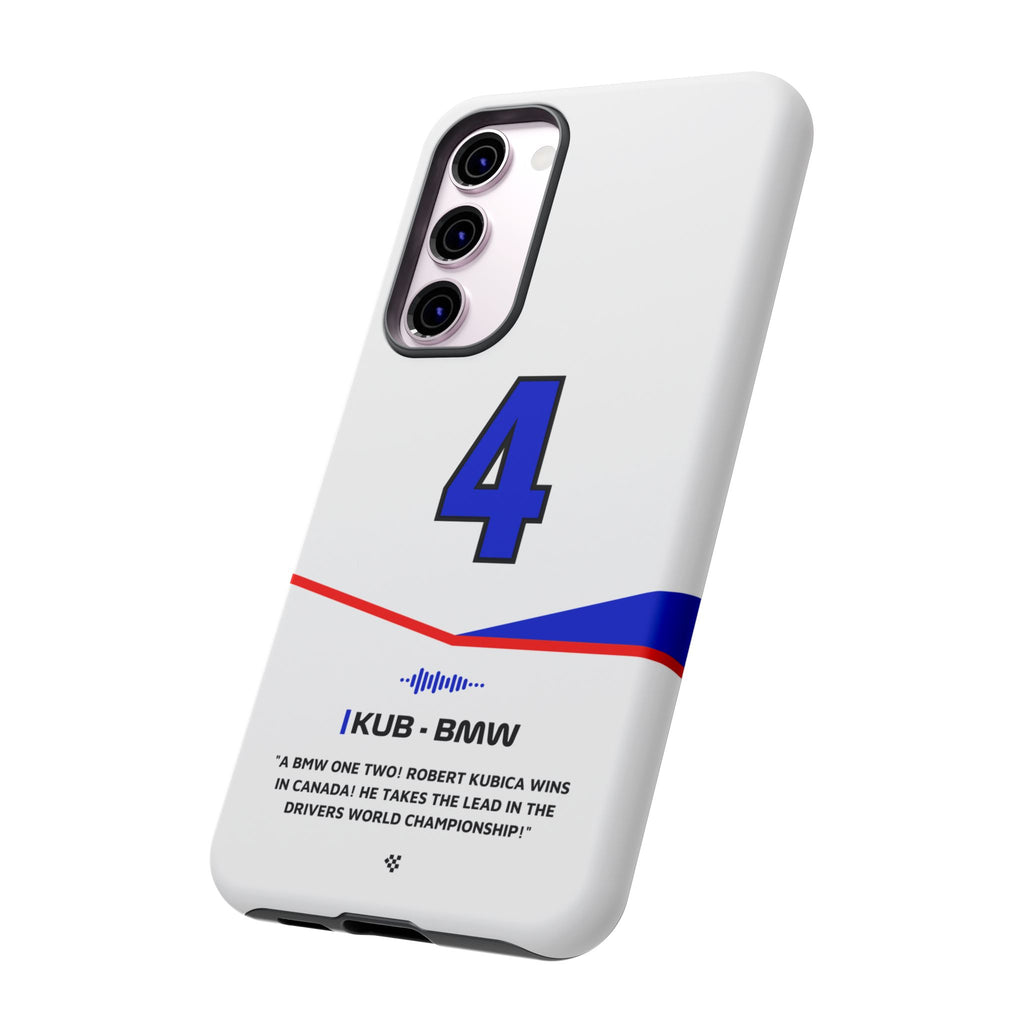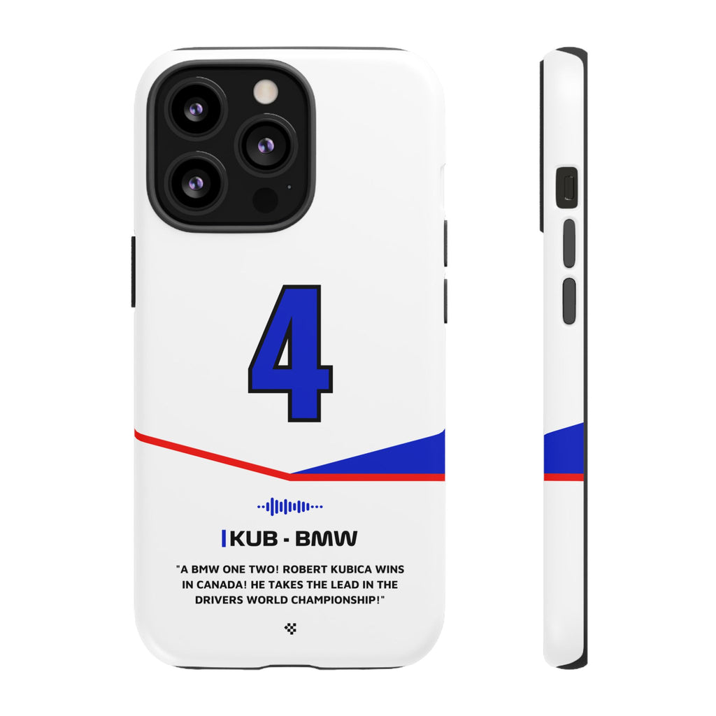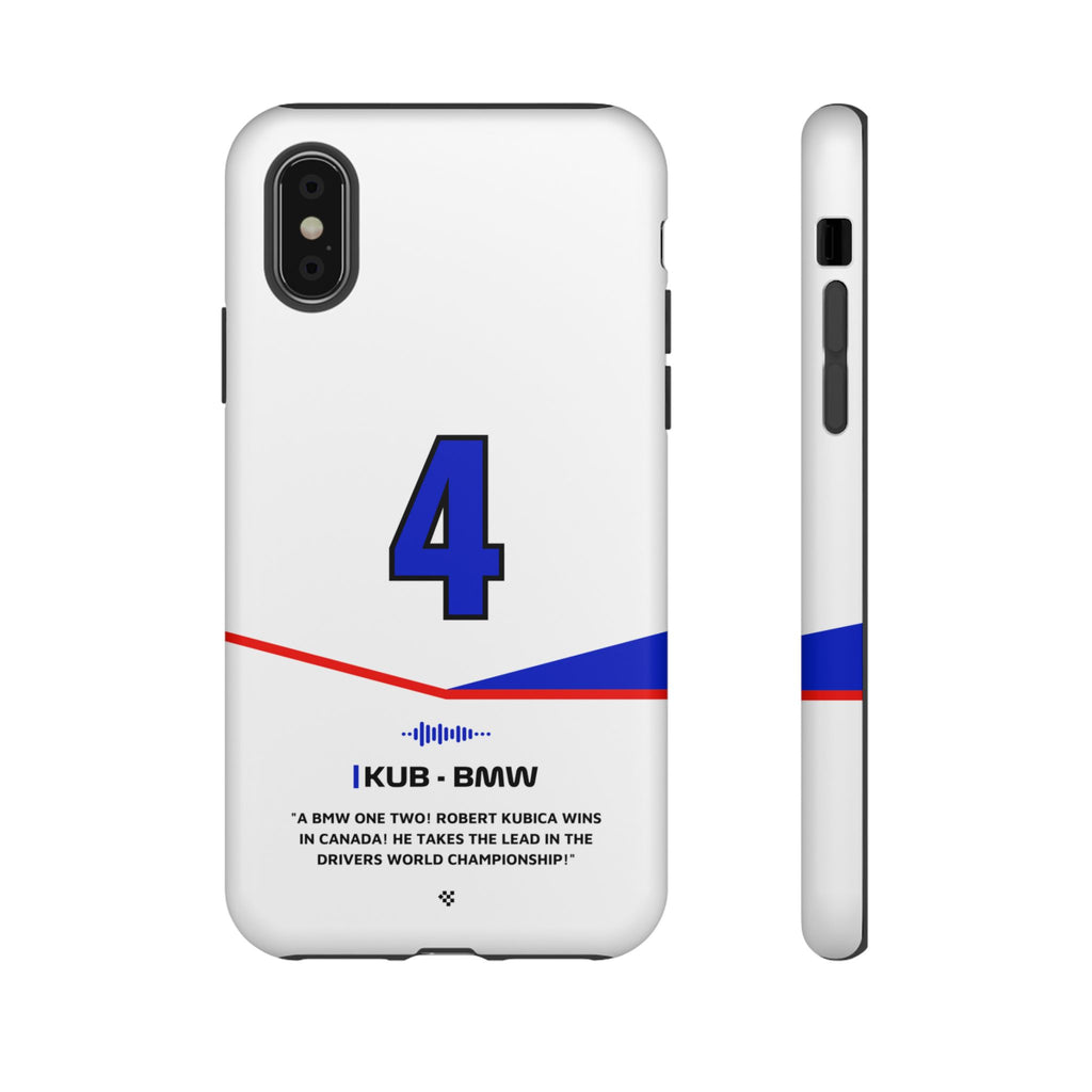 Make sure his legacy persists with the exclusive Robert Kubica F1 Legend Phone Case. It's the perfect accessory for every passionate Formula 1 and Kubica fan. Featuring Robert's iconic #4 race number and the bold 2008 BMW-Sauber team colors, this stylish phone case brings racing energy straight to your hand.