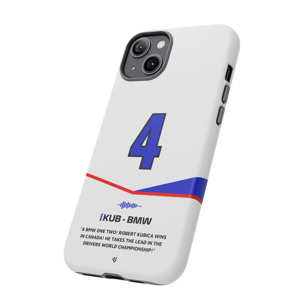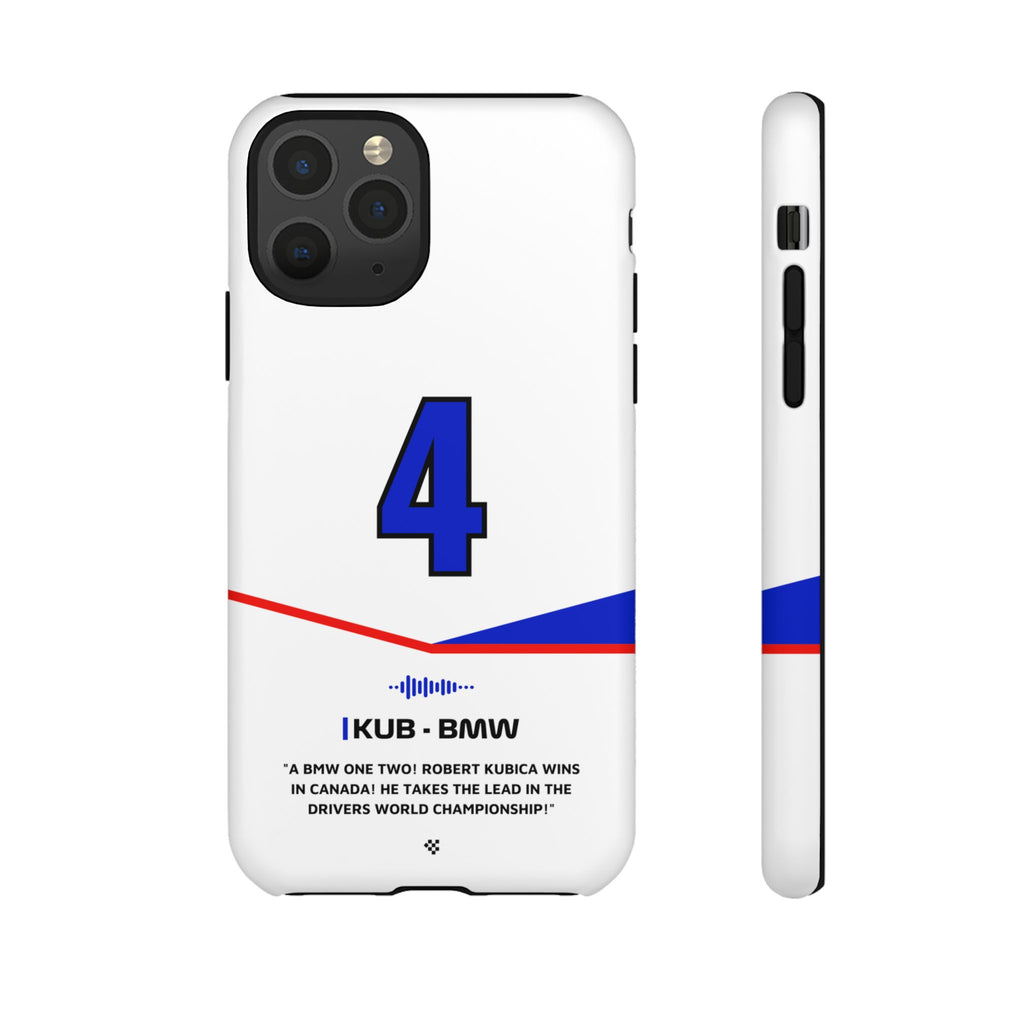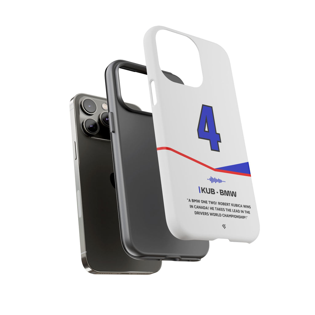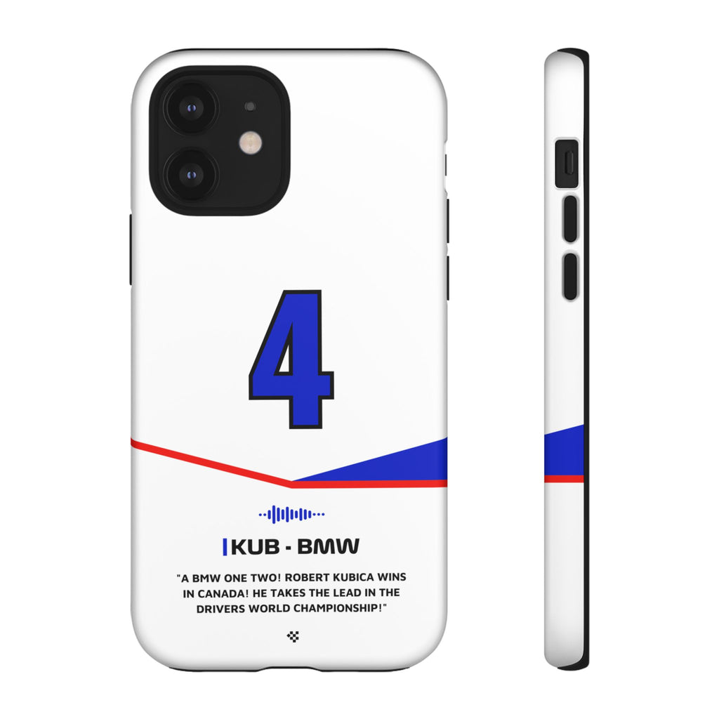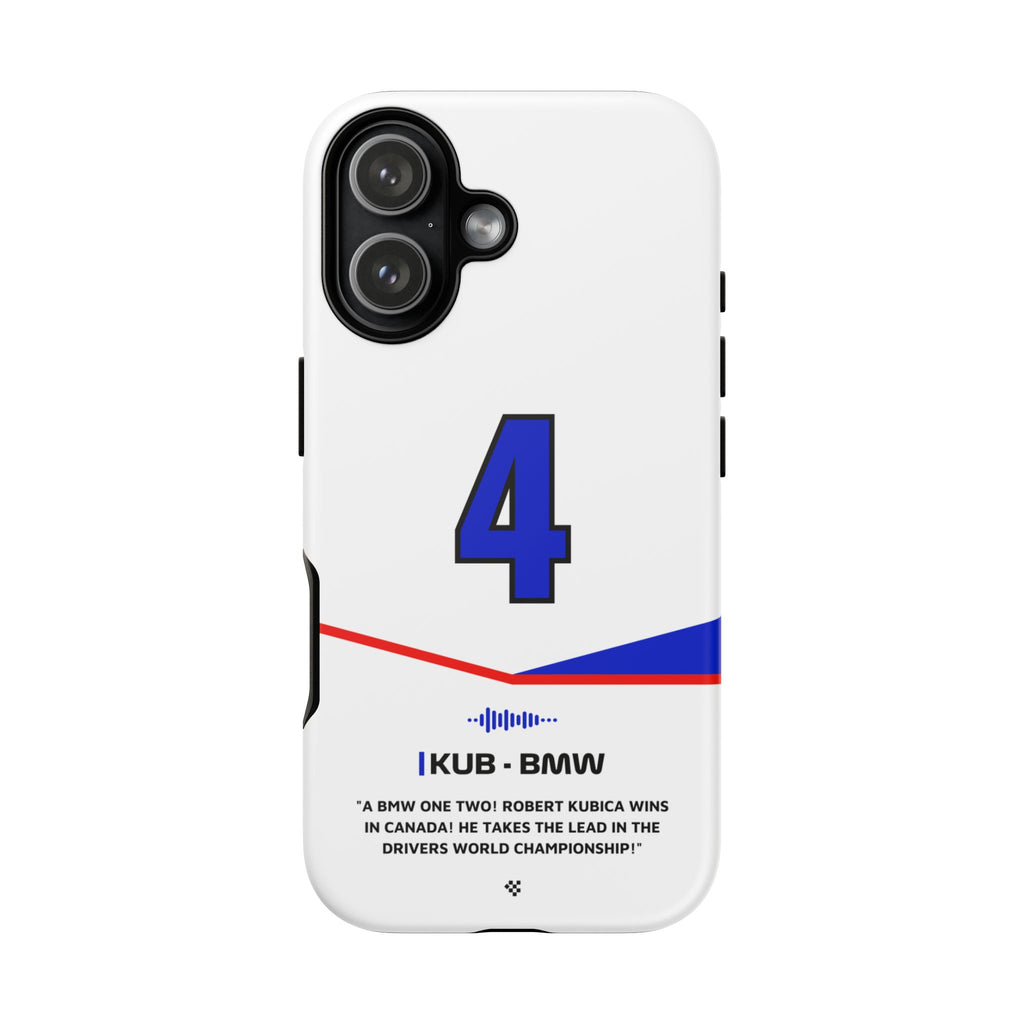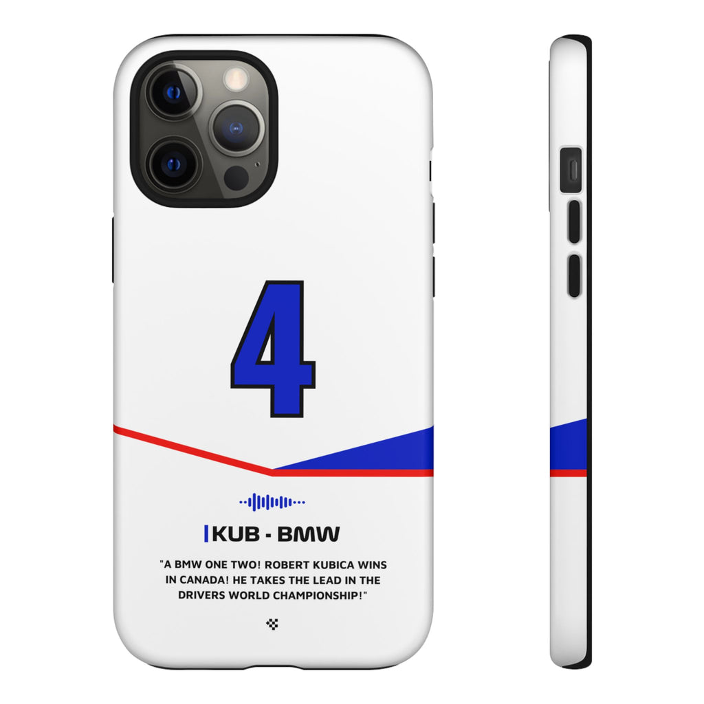 Make sure his legacy persists with the exclusive Robert Kubica F1 Legend Phone Case. It's the perfect accessory for every passionate Formula 1 and Kubica fan. Featuring Robert's iconic #4 race number and the bold 2008 BMW-Sauber team colors, this stylish phone case brings racing energy straight to your hand.