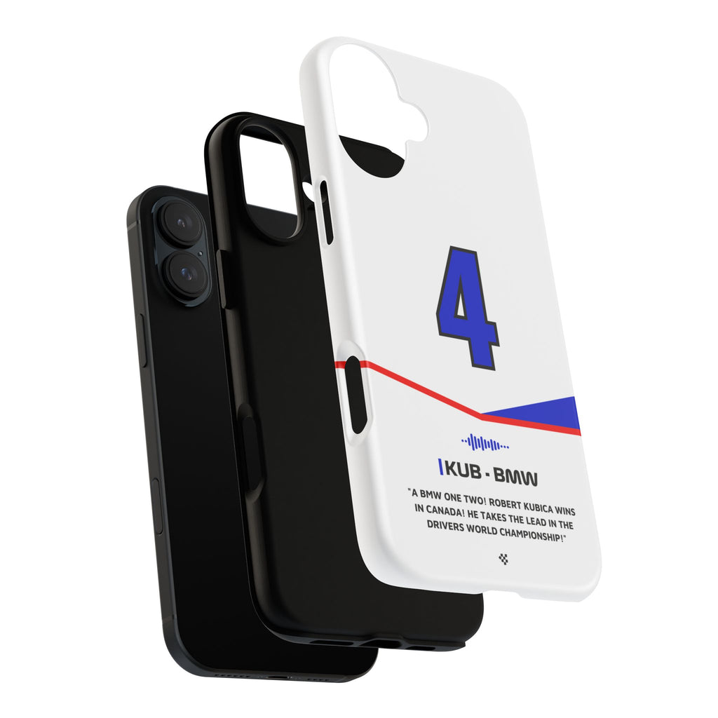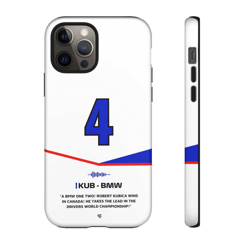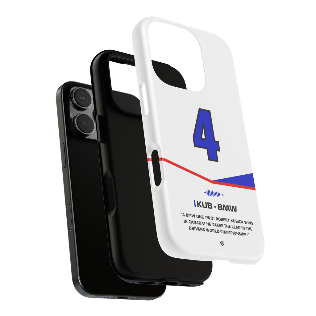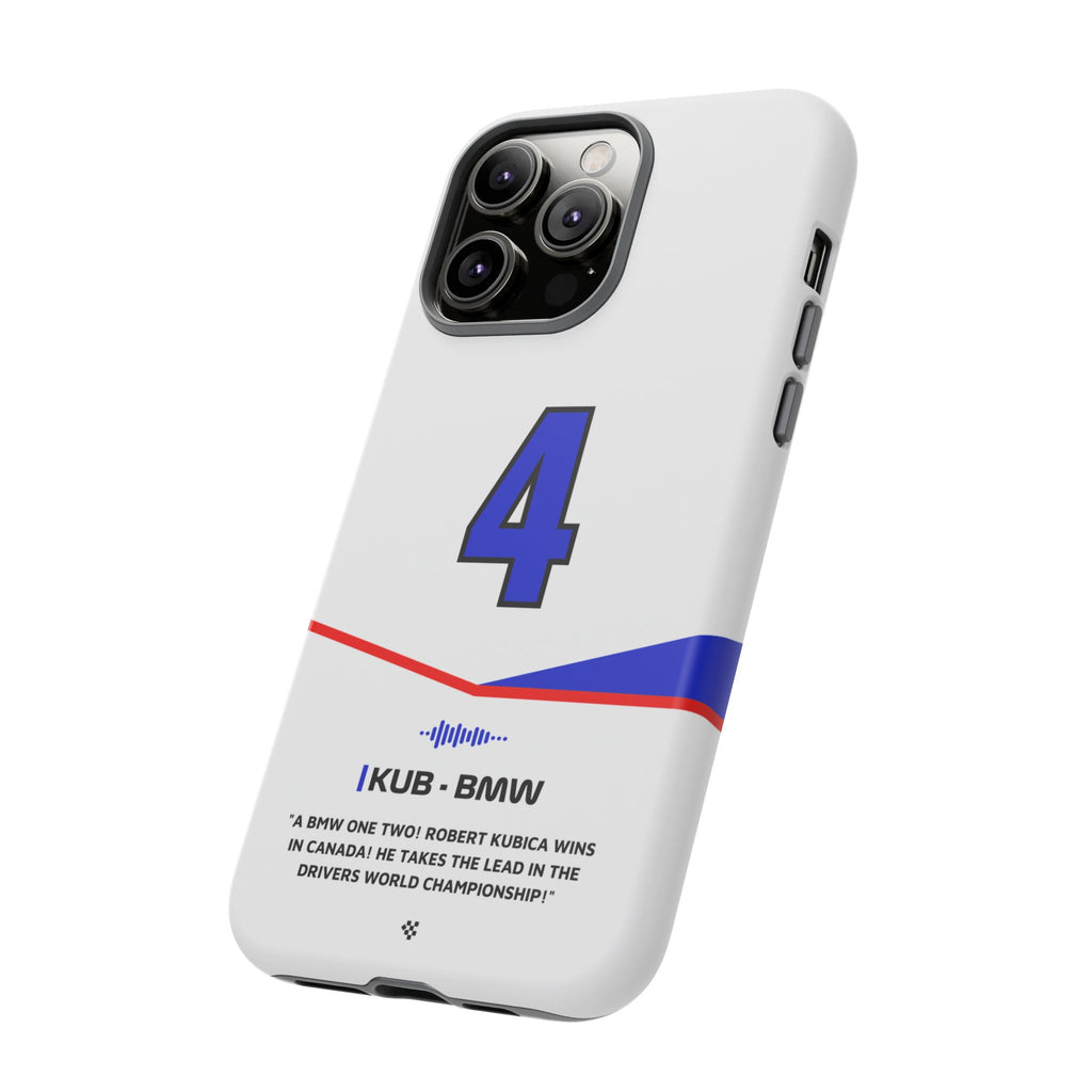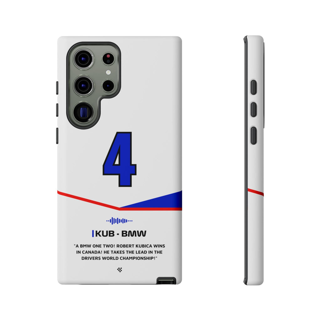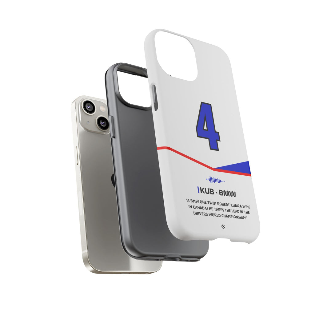 Make sure his legacy persists with the exclusive Robert Kubica F1 Legend Phone Case. It's the perfect accessory for every passionate Formula 1 and Kubica fan. Featuring Robert's iconic #4 race number and the bold 2008 BMW-Sauber team colors, this stylish phone case brings racing energy straight to your hand.