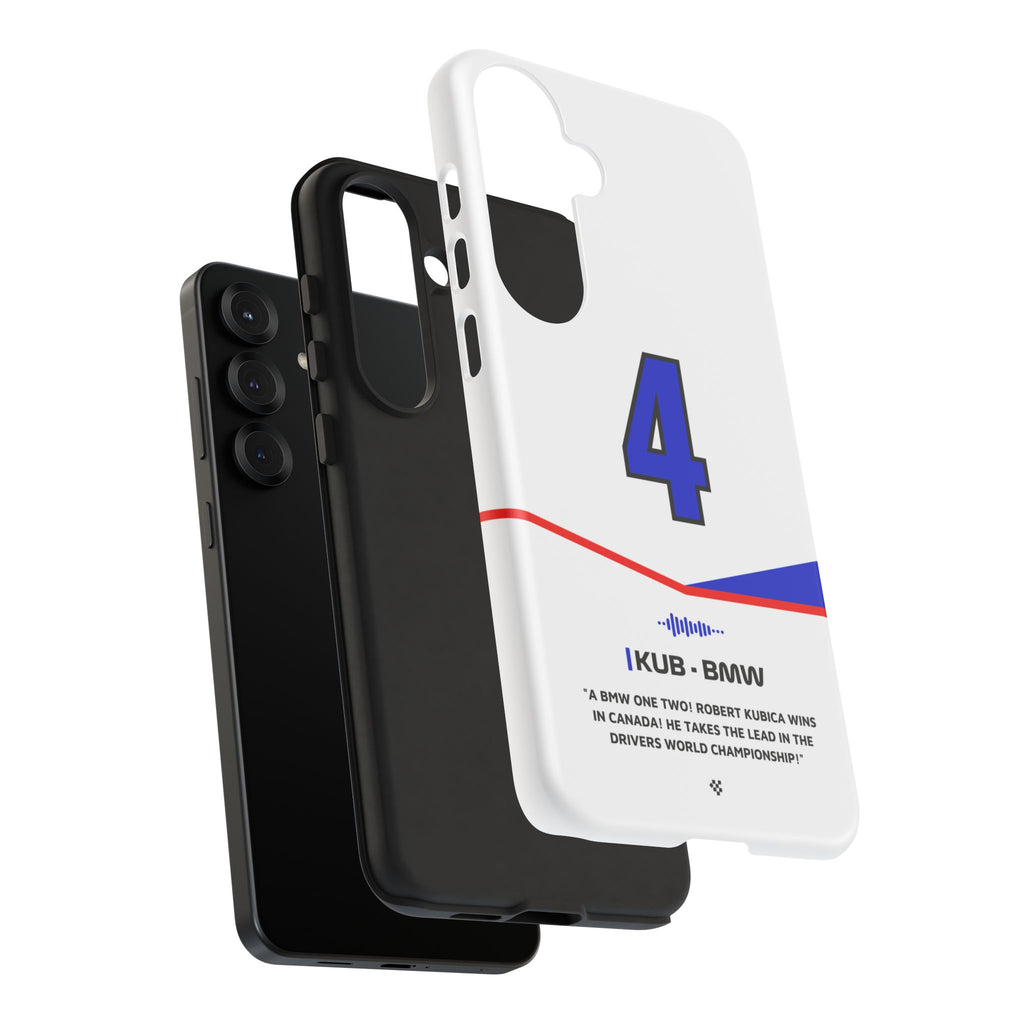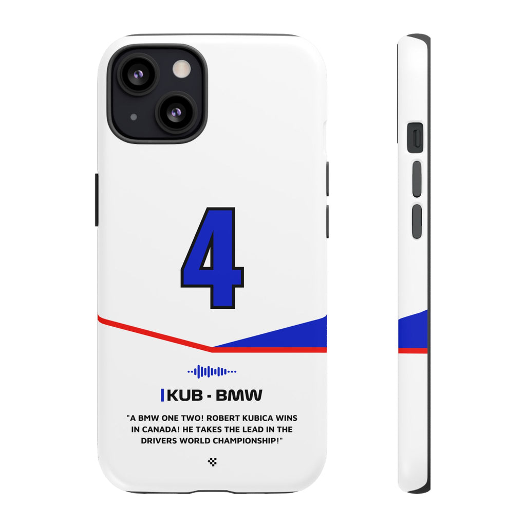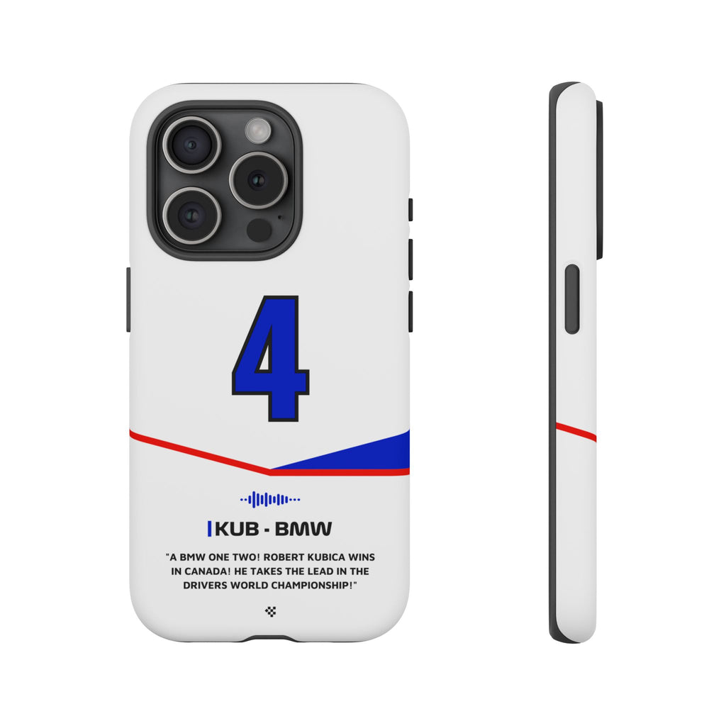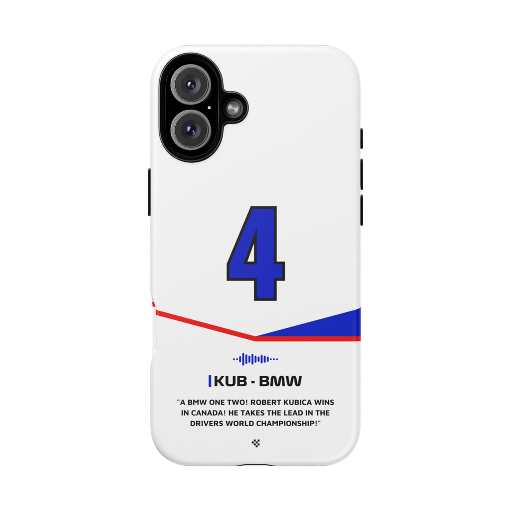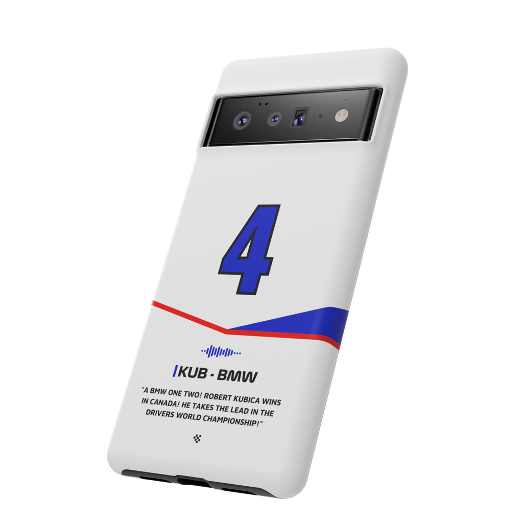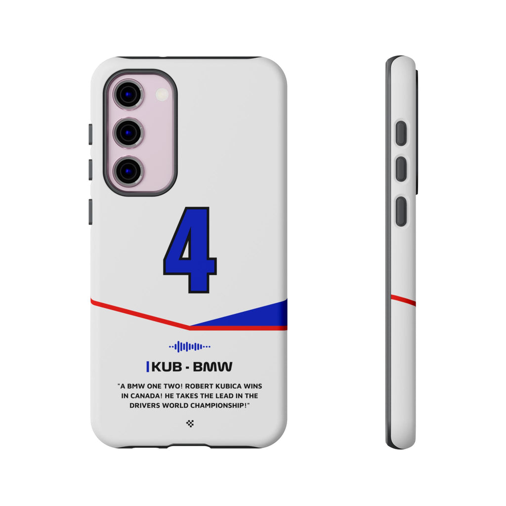 Make sure his legacy persists with the exclusive Robert Kubica F1 Legend Phone Case. It's the perfect accessory for every passionate Formula 1 and Kubica fan. Featuring Robert's iconic #4 race number and the bold 2008 BMW-Sauber team colors, this stylish phone case brings racing energy straight to your hand.
