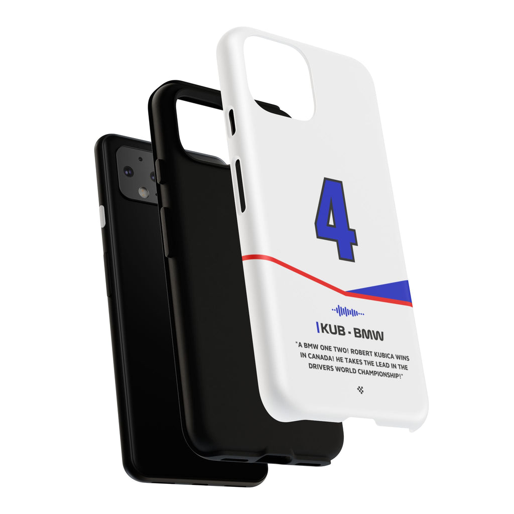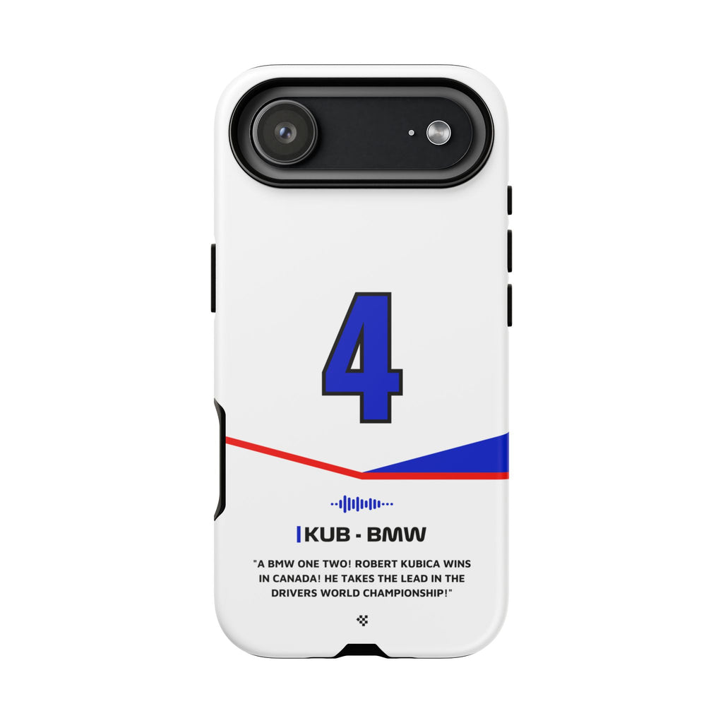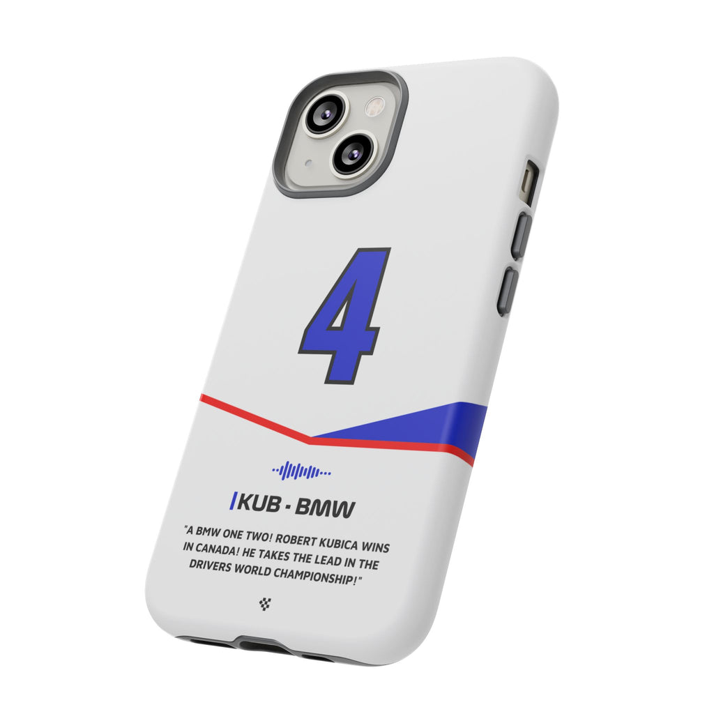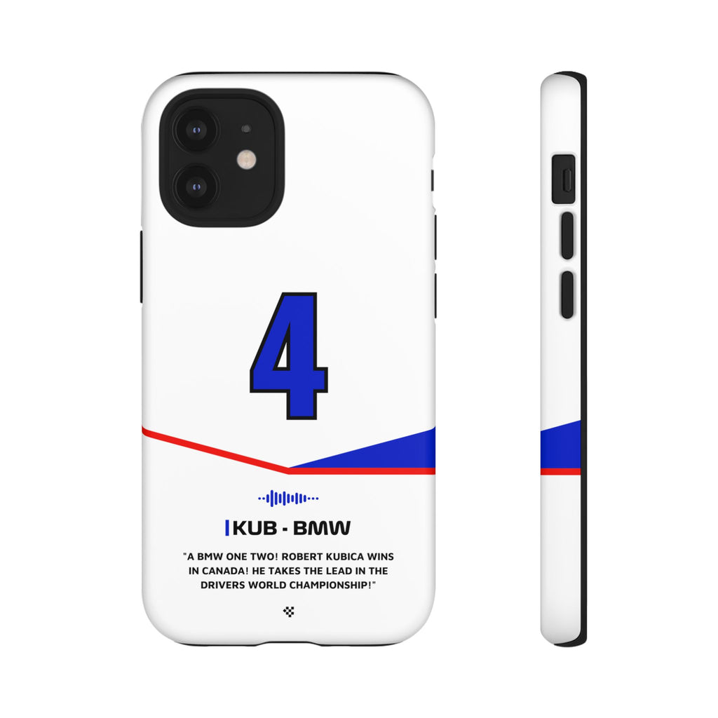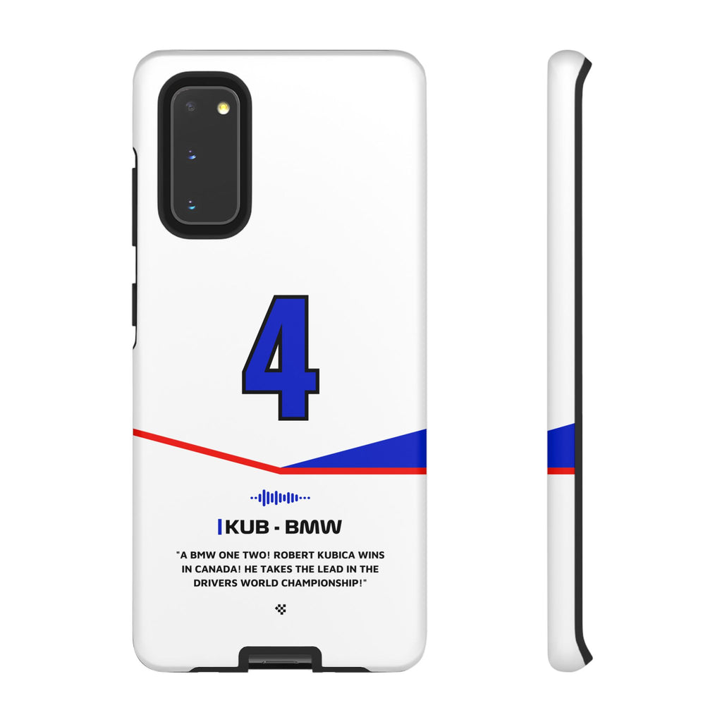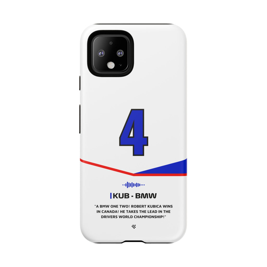 Make sure his legacy persists with the exclusive Robert Kubica F1 Legend Phone Case. It's the perfect accessory for every passionate Formula 1 and Kubica fan. Featuring Robert's iconic #4 race number and the bold 2008 BMW-Sauber team colors, this stylish phone case brings racing energy straight to your hand.