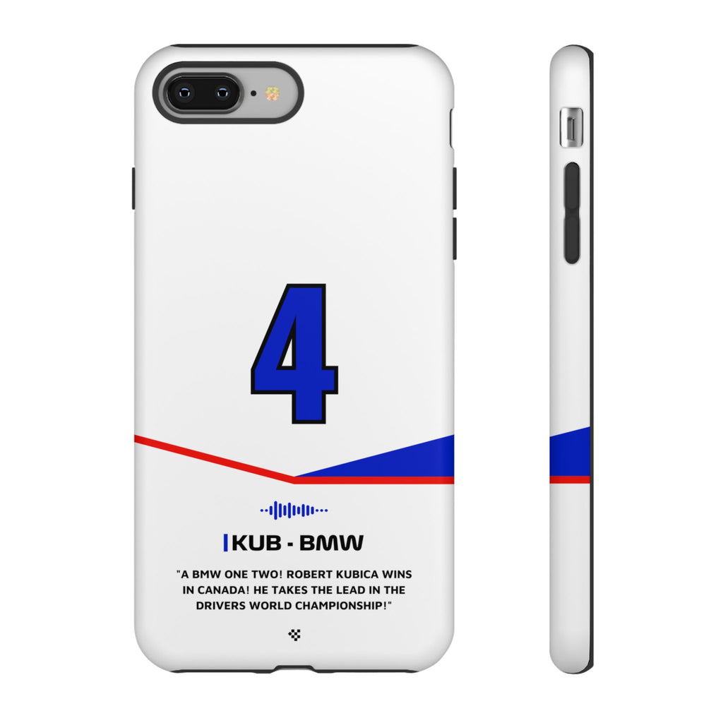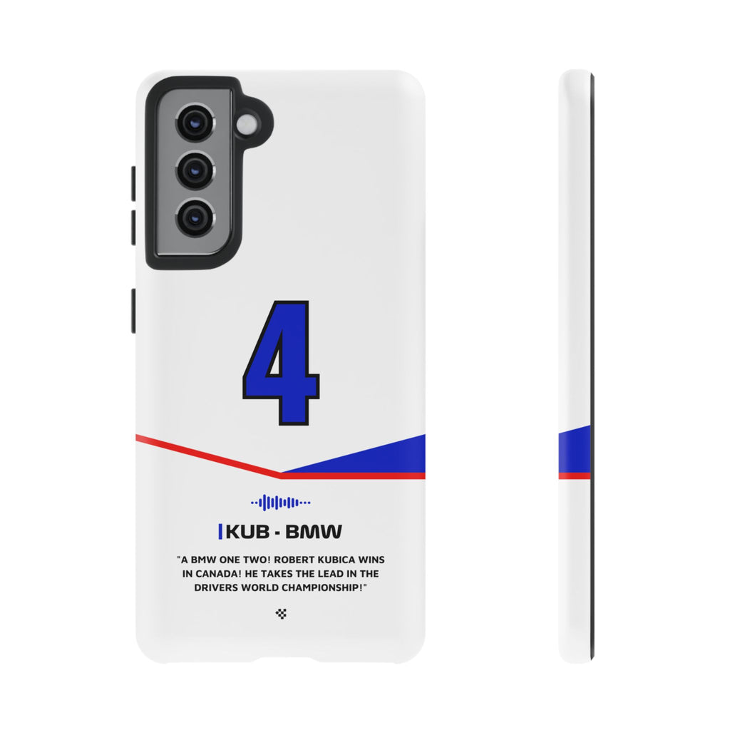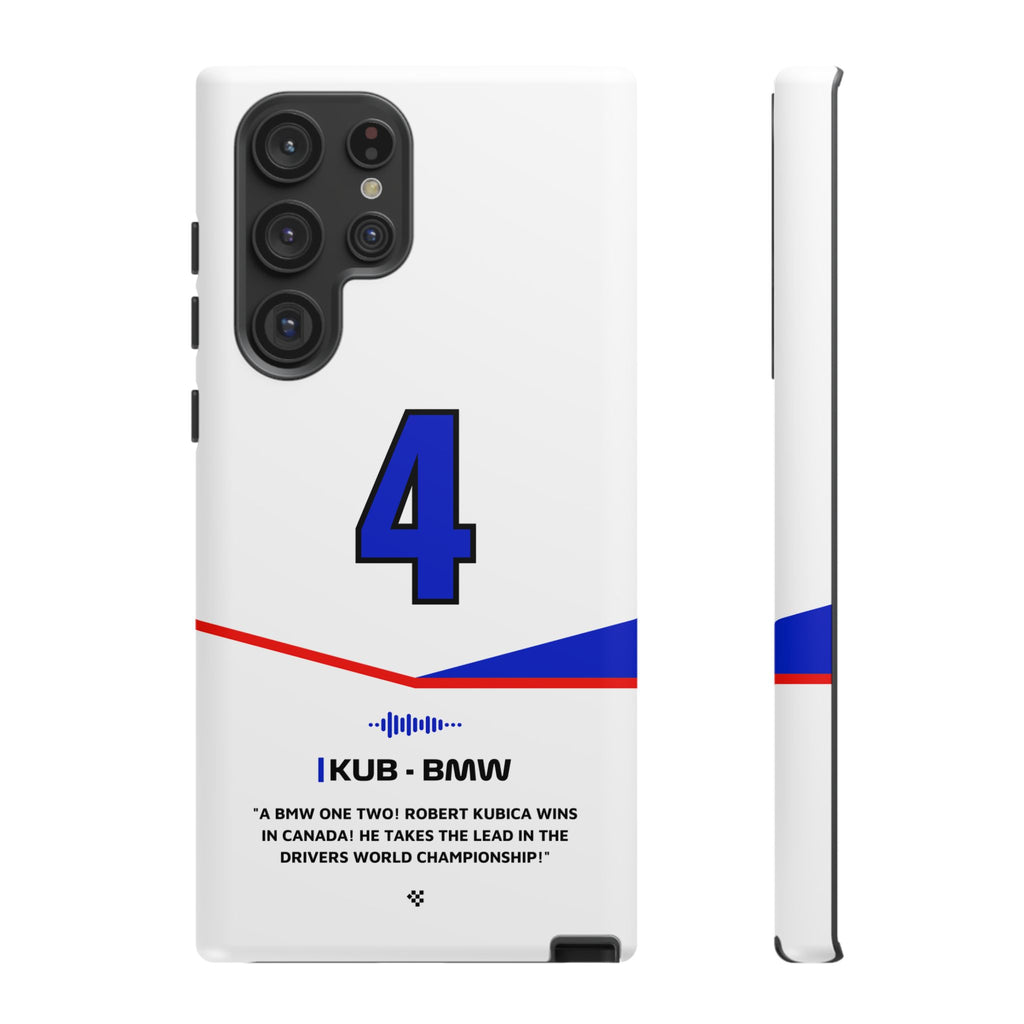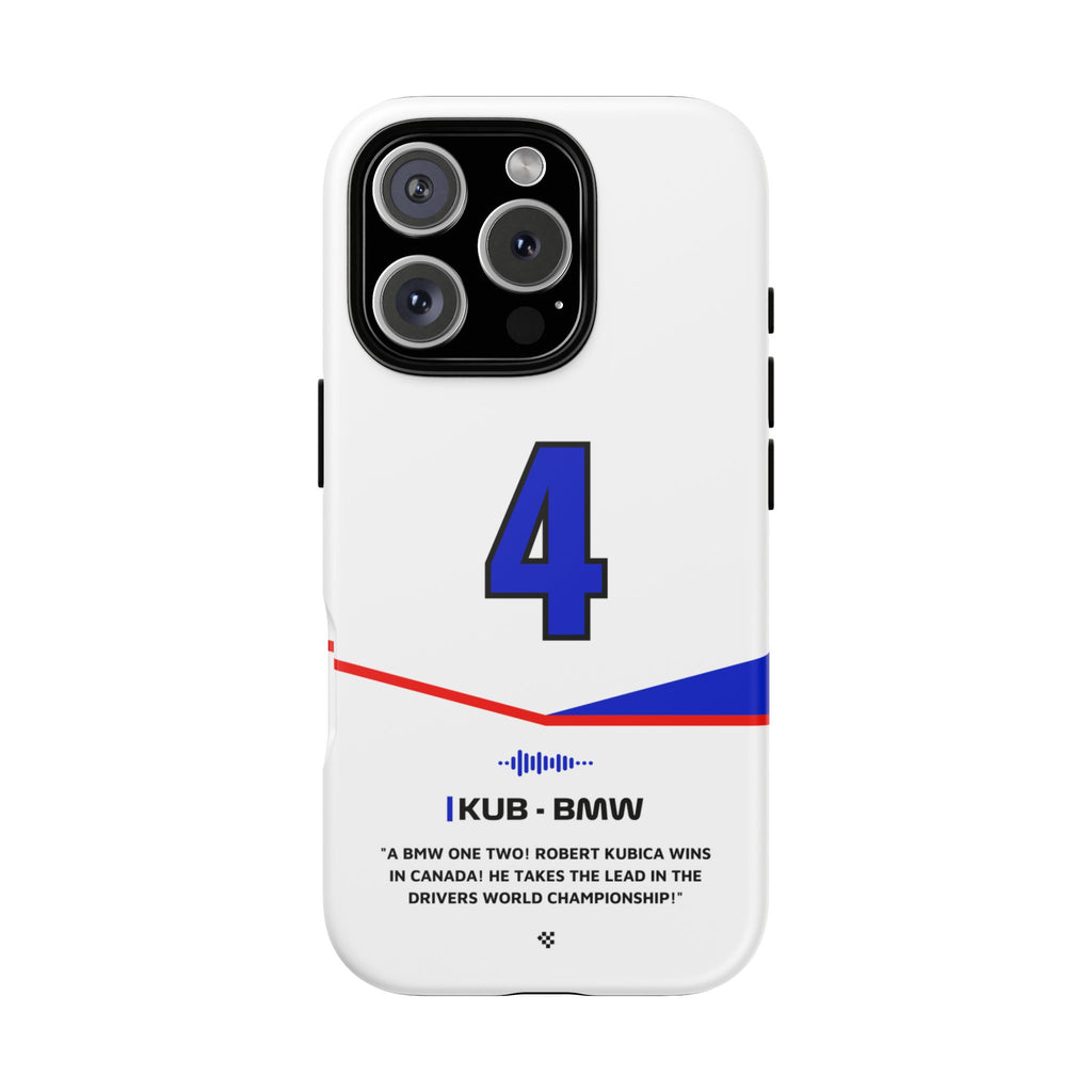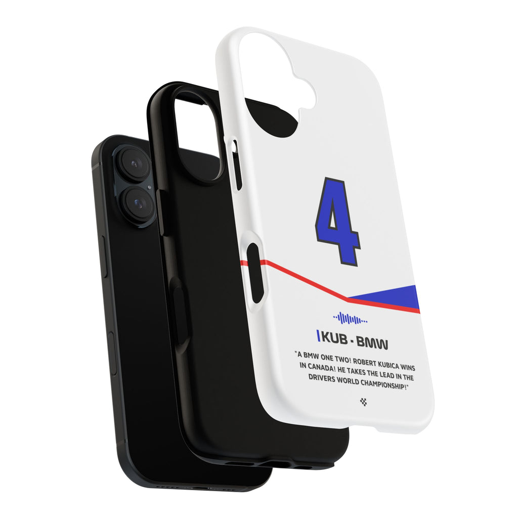 Make sure his legacy persists with the exclusive Robert Kubica F1 Legend Phone Case. It's the perfect accessory for every passionate Formula 1 and Kubica fan. Featuring Robert's iconic #4 race number and the bold 2008 BMW-Sauber team colors, this stylish phone case brings racing energy straight to your hand.