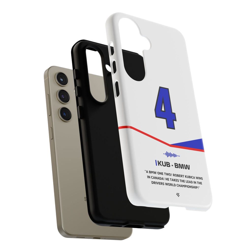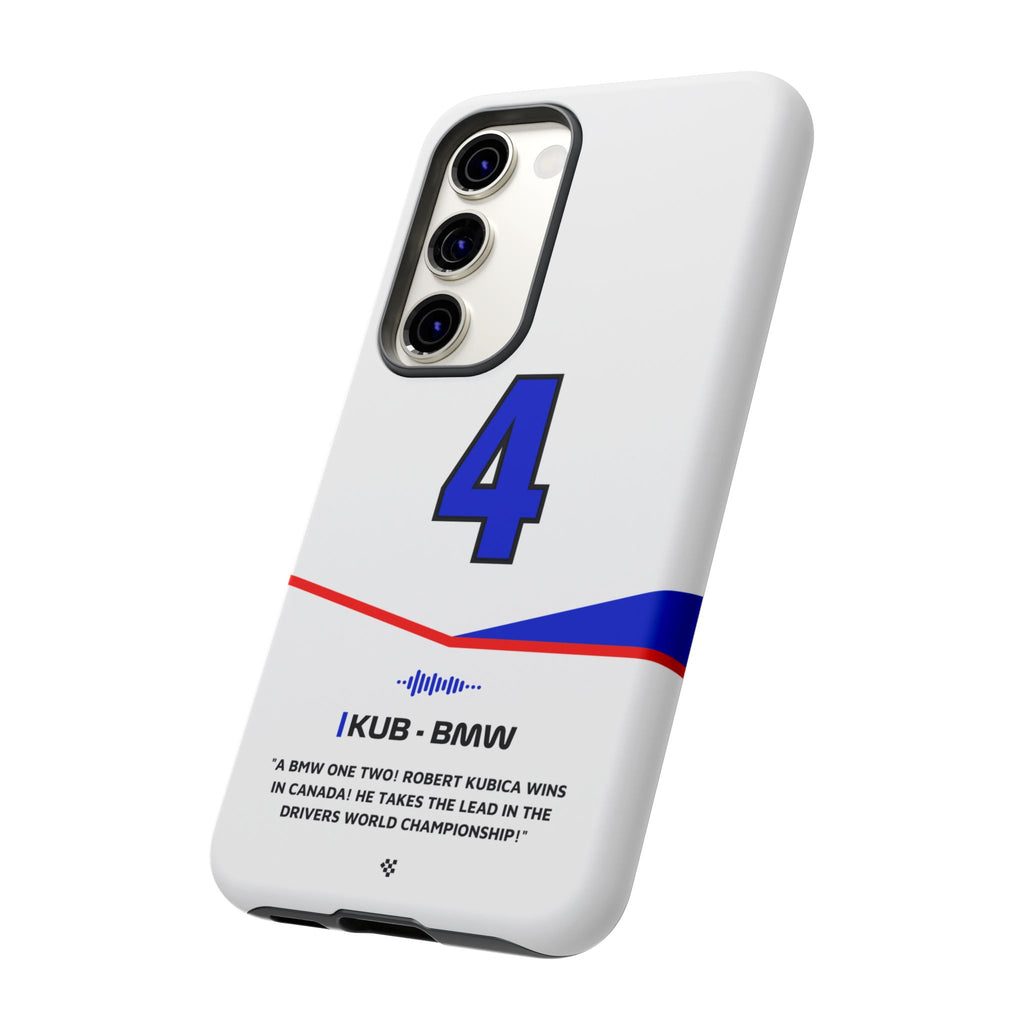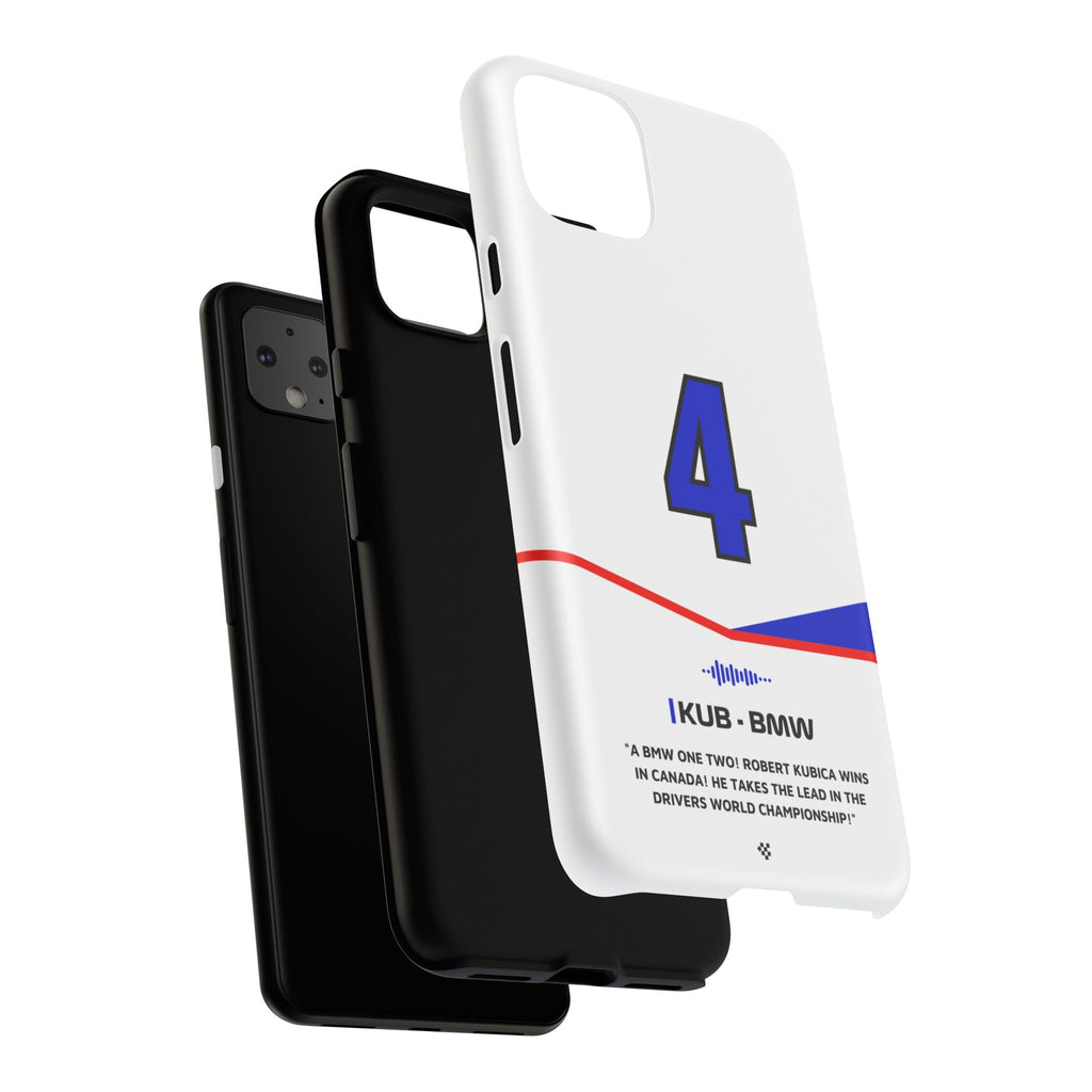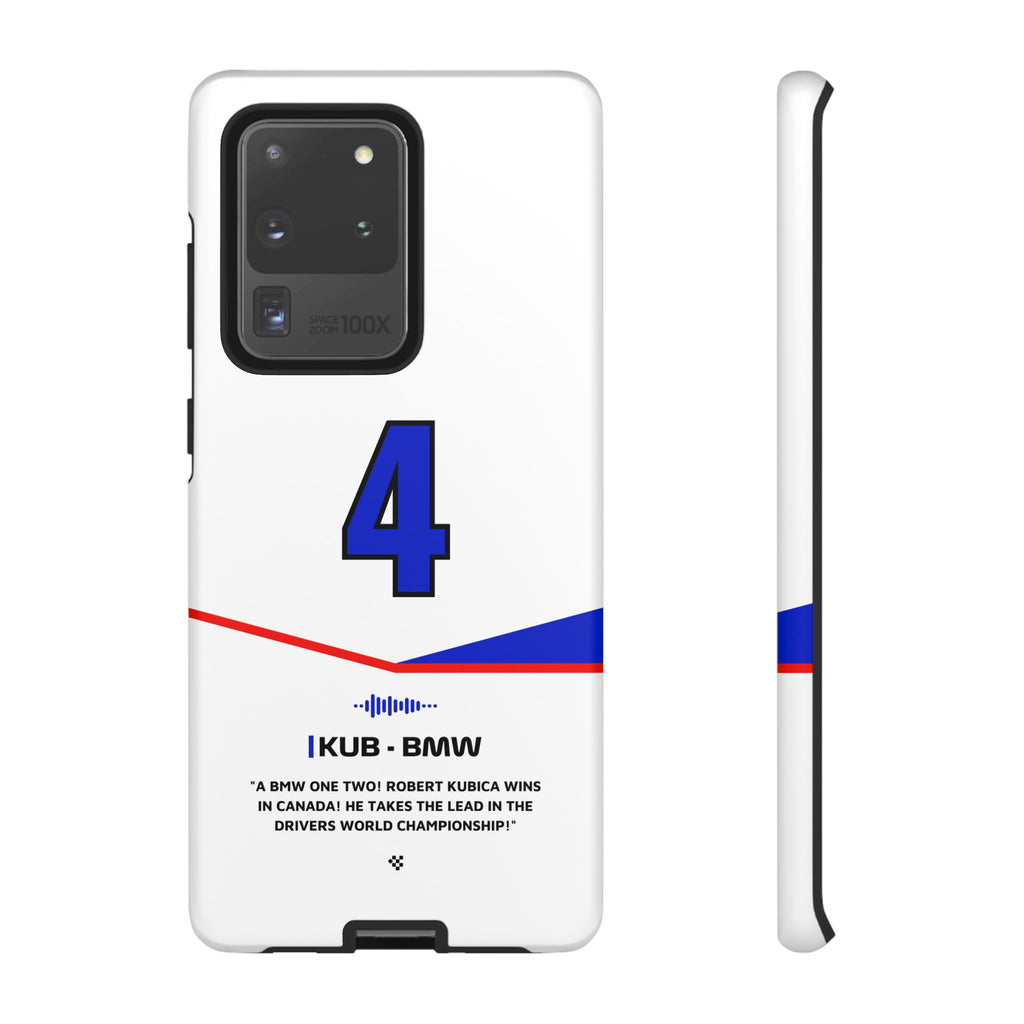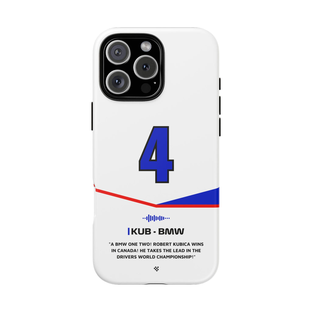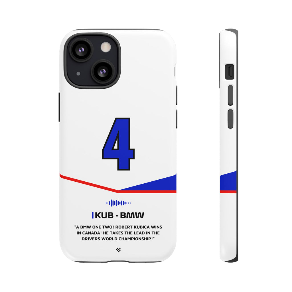 Make sure his legacy persists with the exclusive Robert Kubica F1 Legend Phone Case. It's the perfect accessory for every passionate Formula 1 and Kubica fan. Featuring Robert's iconic #4 race number and the bold 2008 BMW-Sauber team colors, this stylish phone case brings racing energy straight to your hand.