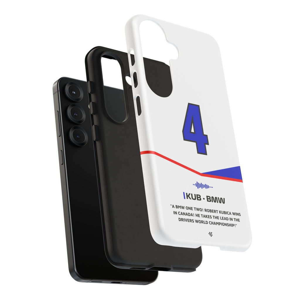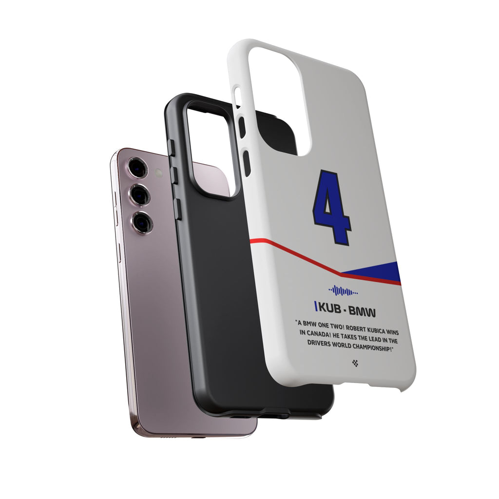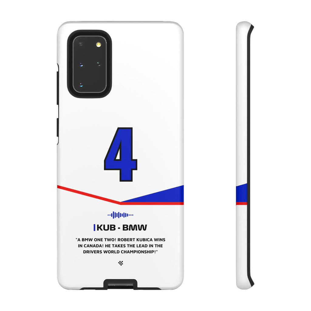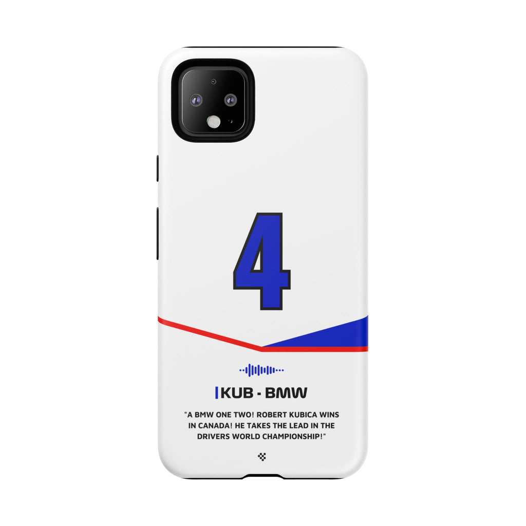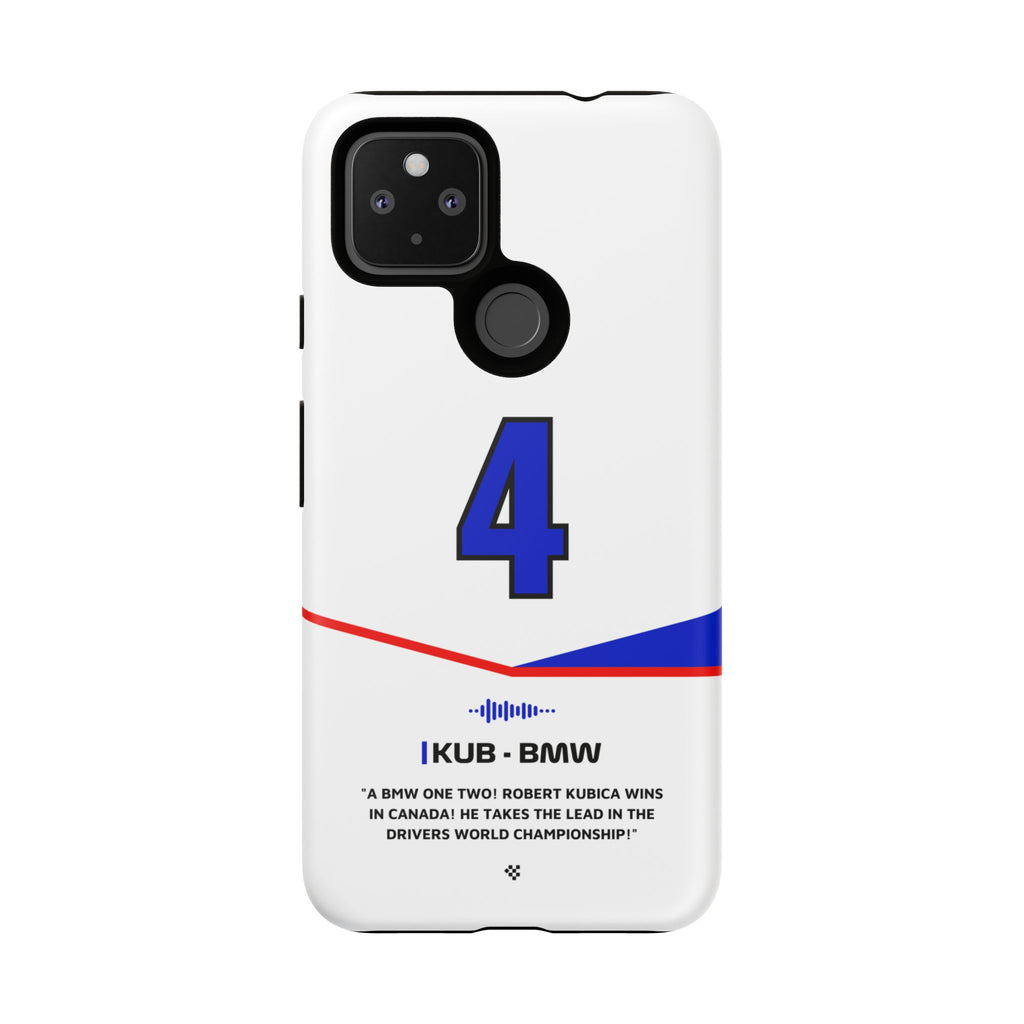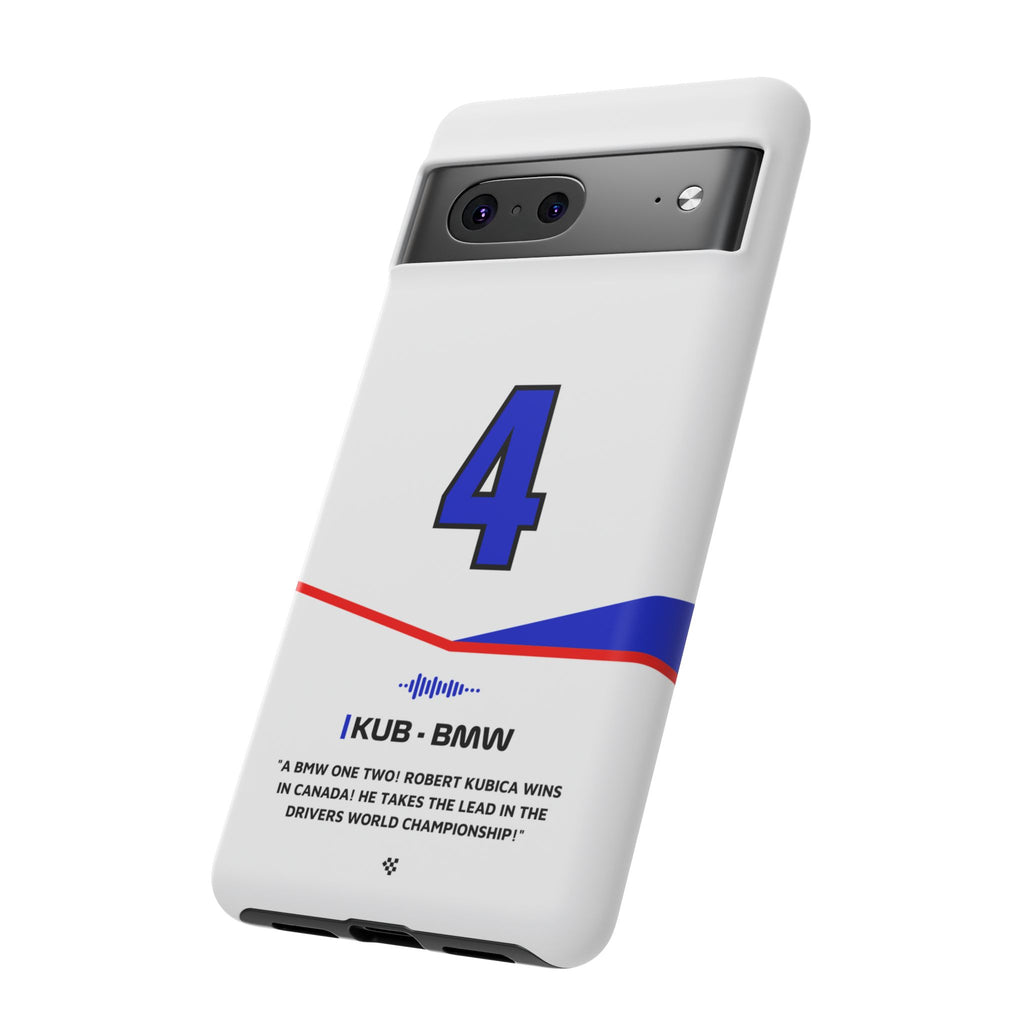 Make sure his legacy persists with the exclusive Robert Kubica F1 Legend Phone Case. It's the perfect accessory for every passionate Formula 1 and Kubica fan. Featuring Robert's iconic #4 race number and the bold 2008 BMW-Sauber team colors, this stylish phone case brings racing energy straight to your hand.