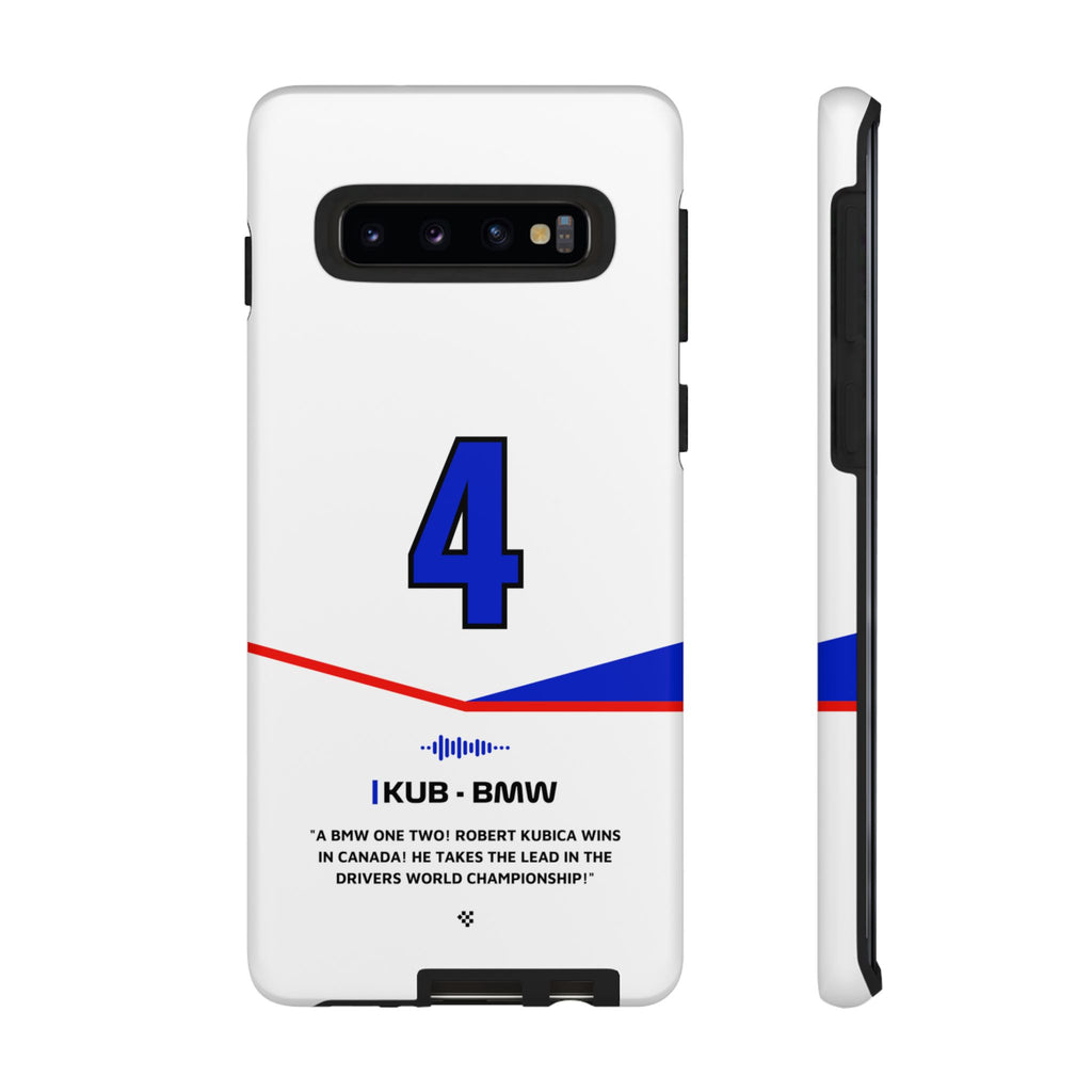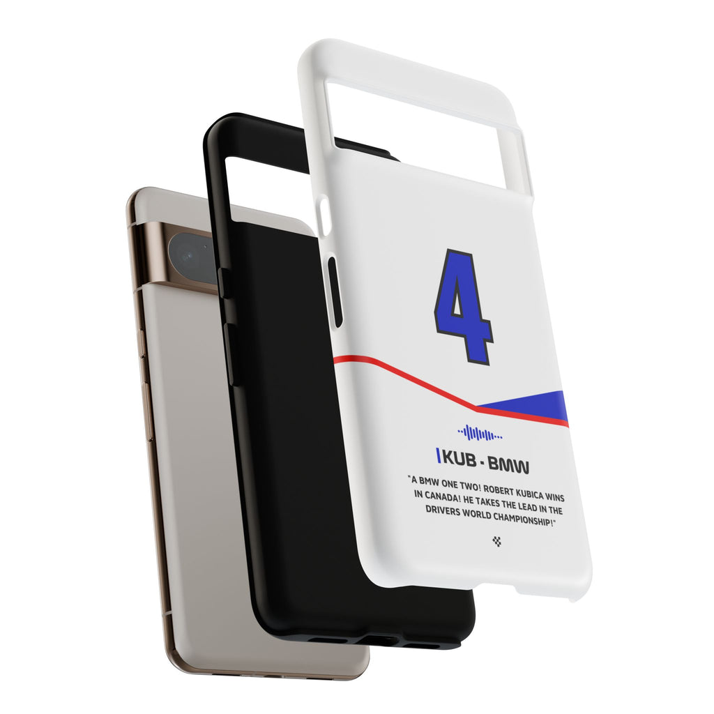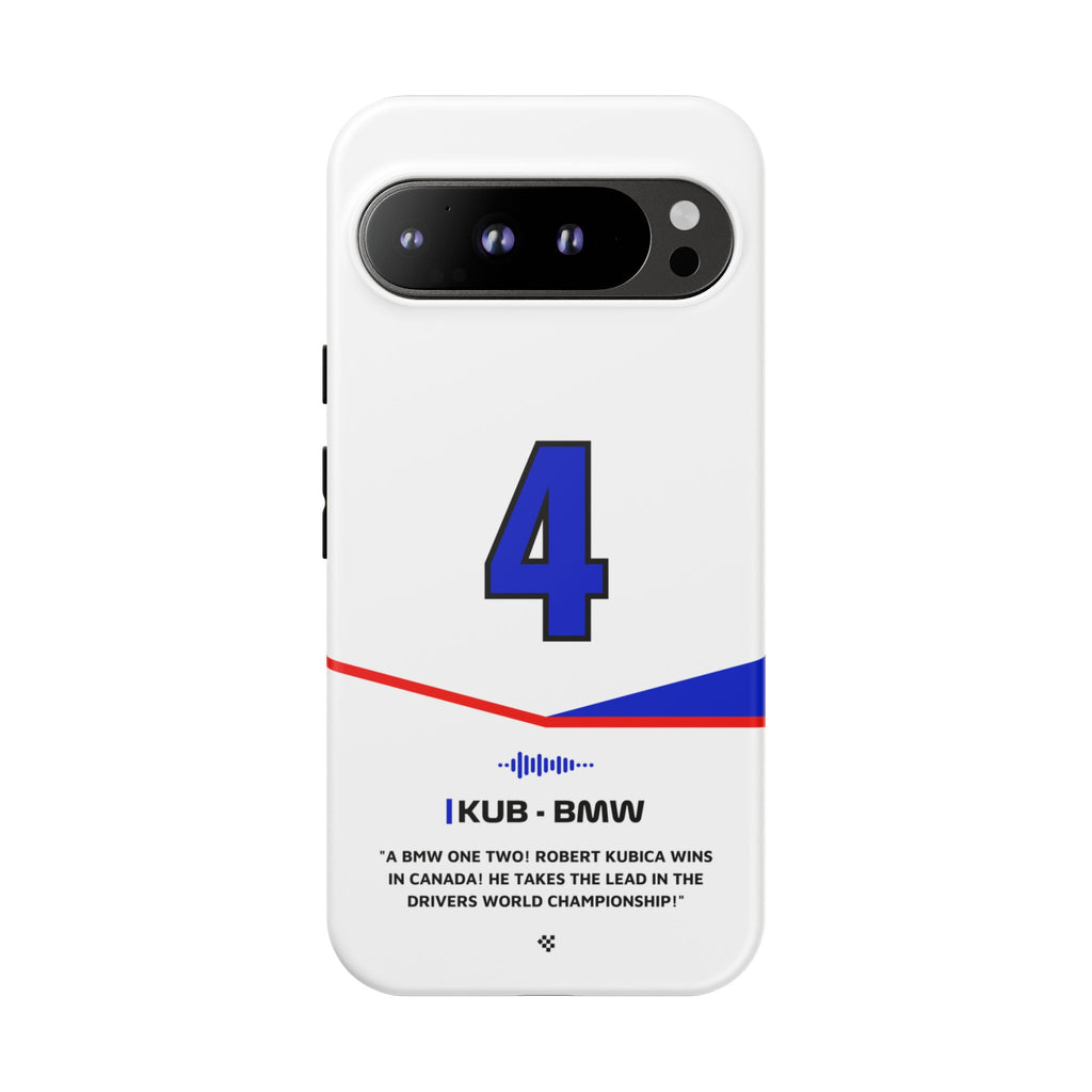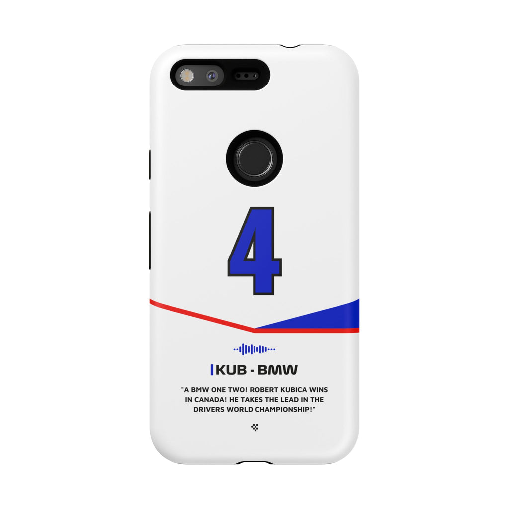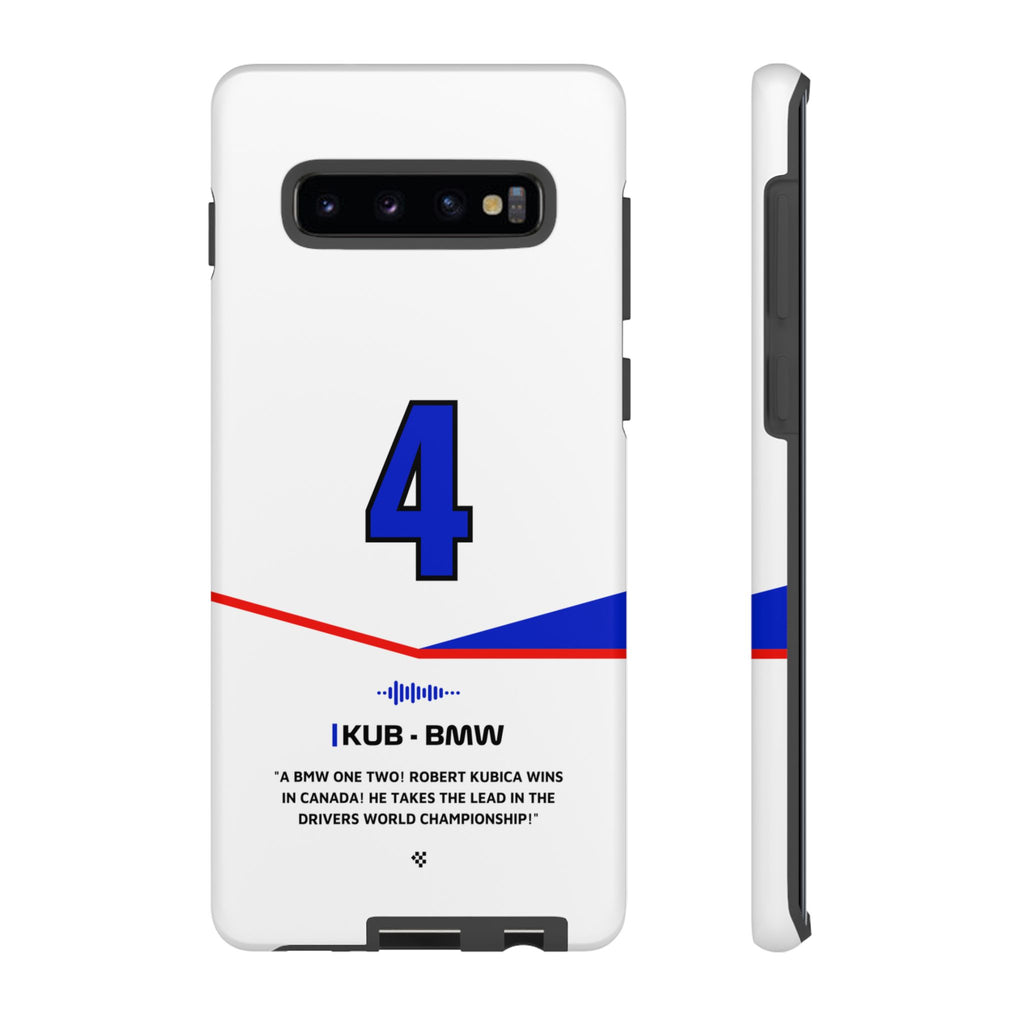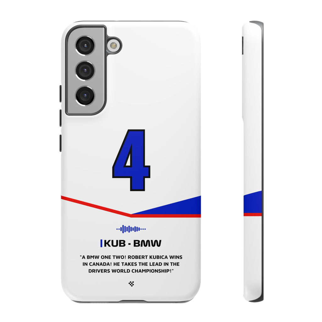 Make sure his legacy persists with the exclusive Robert Kubica F1 Legend Phone Case. It's the perfect accessory for every passionate Formula 1 and Kubica fan. Featuring Robert's iconic #4 race number and the bold 2008 BMW-Sauber team colors, this stylish phone case brings racing energy straight to your hand.