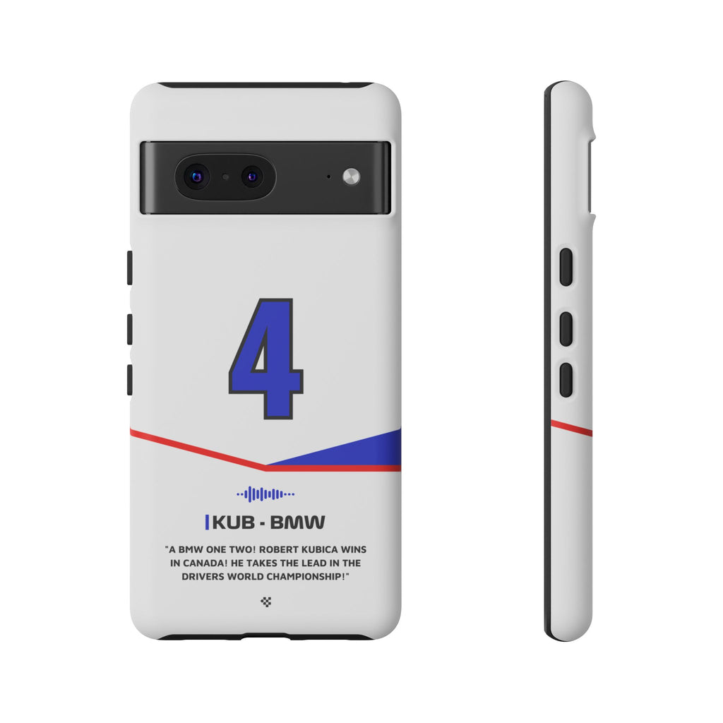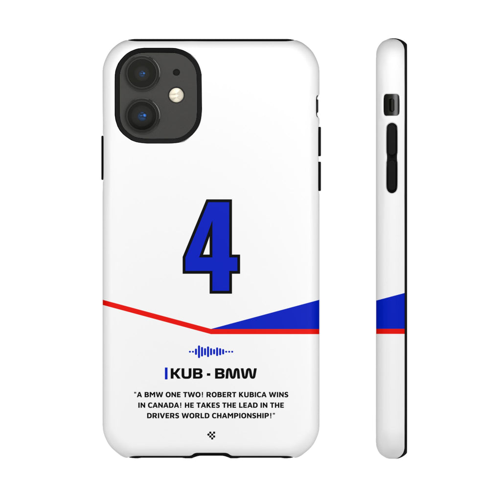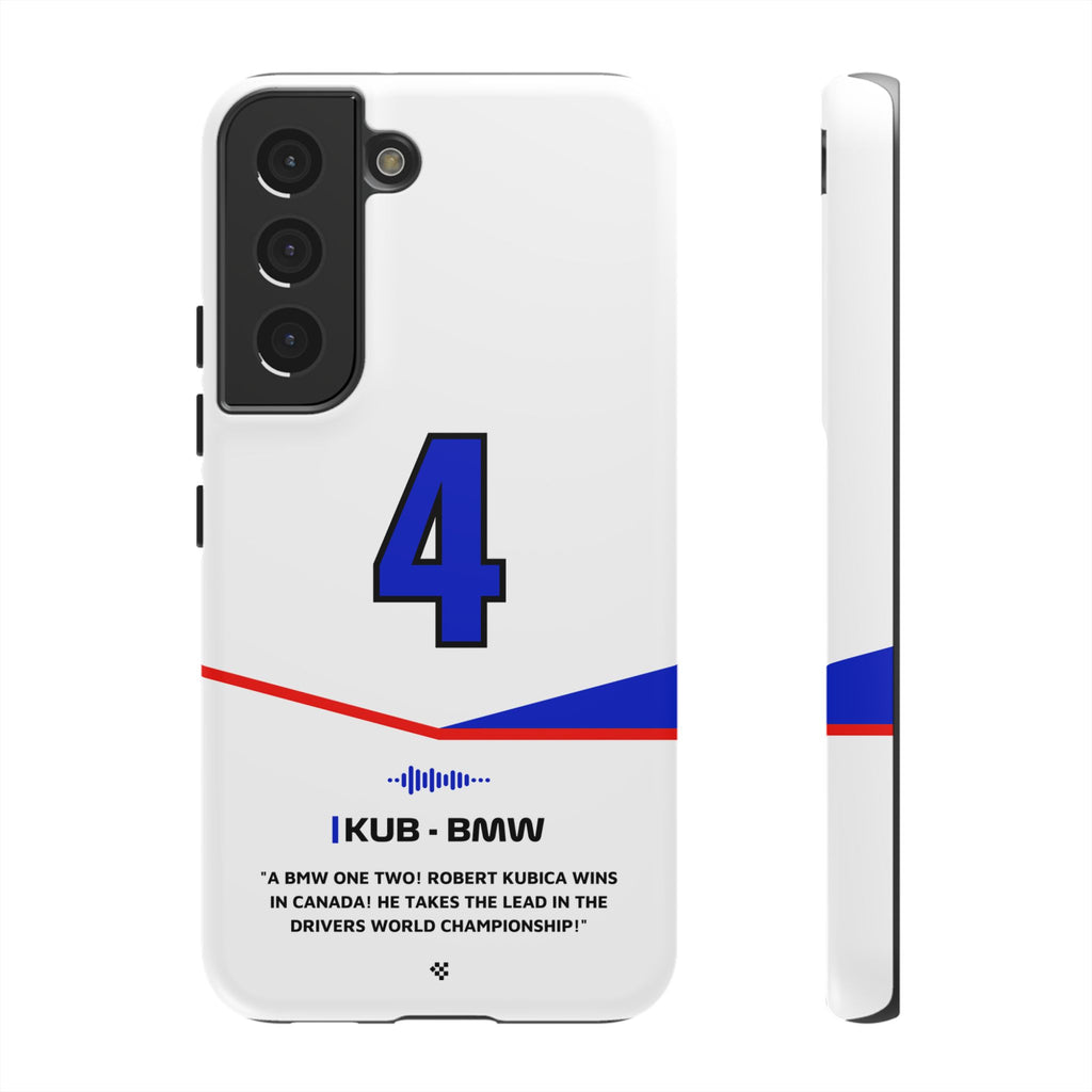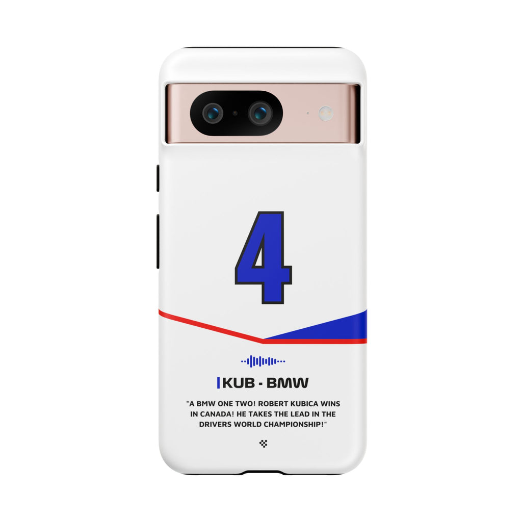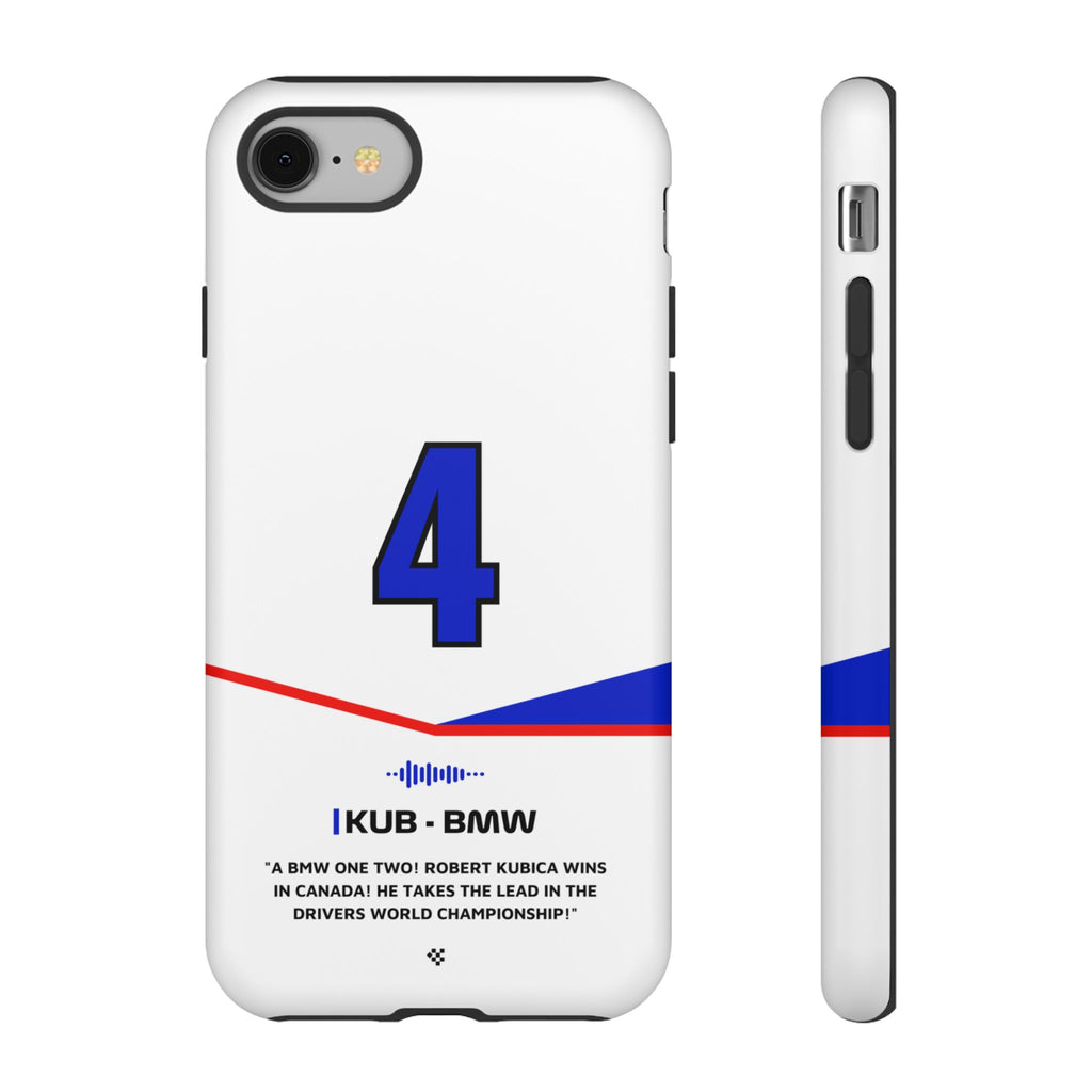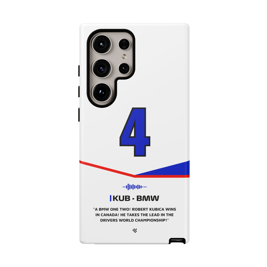Make sure his legacy persists with the exclusive Robert Kubica F1 Legend Phone Case. It's the perfect accessory for every passionate Formula 1 and Kubica fan. Featuring Robert's iconic #4 race number and the bold 2008 BMW-Sauber team colors, this stylish phone case brings racing energy straight to your hand.
