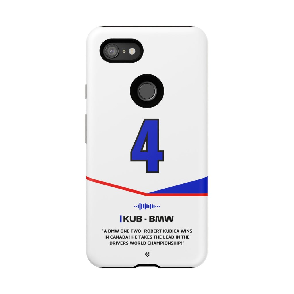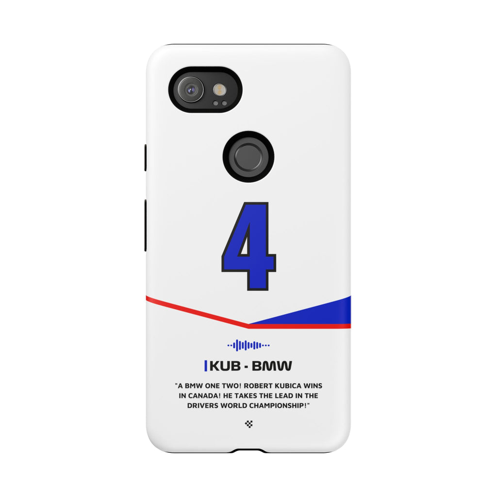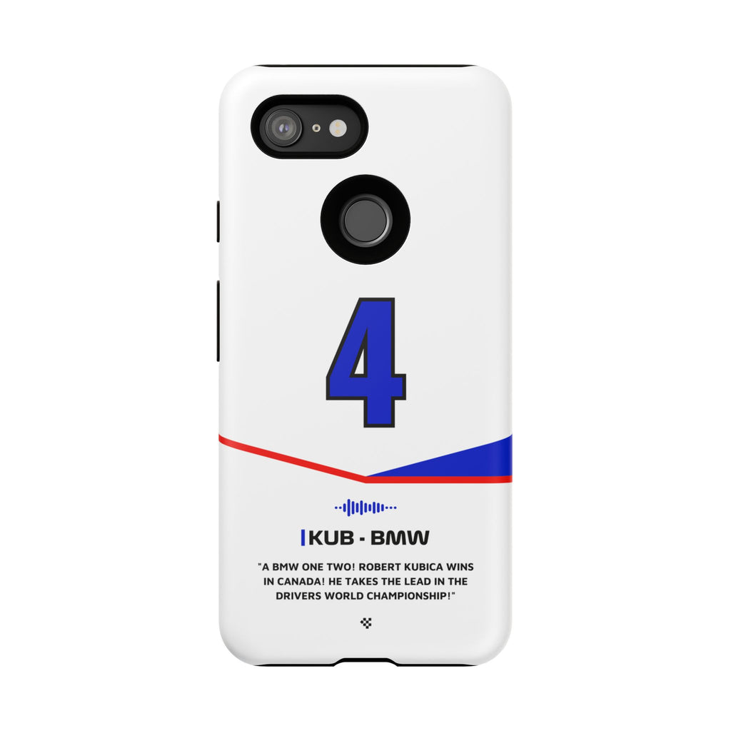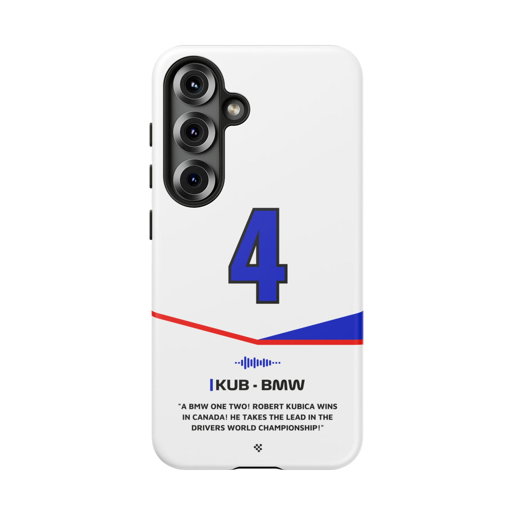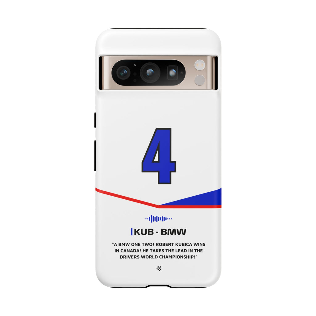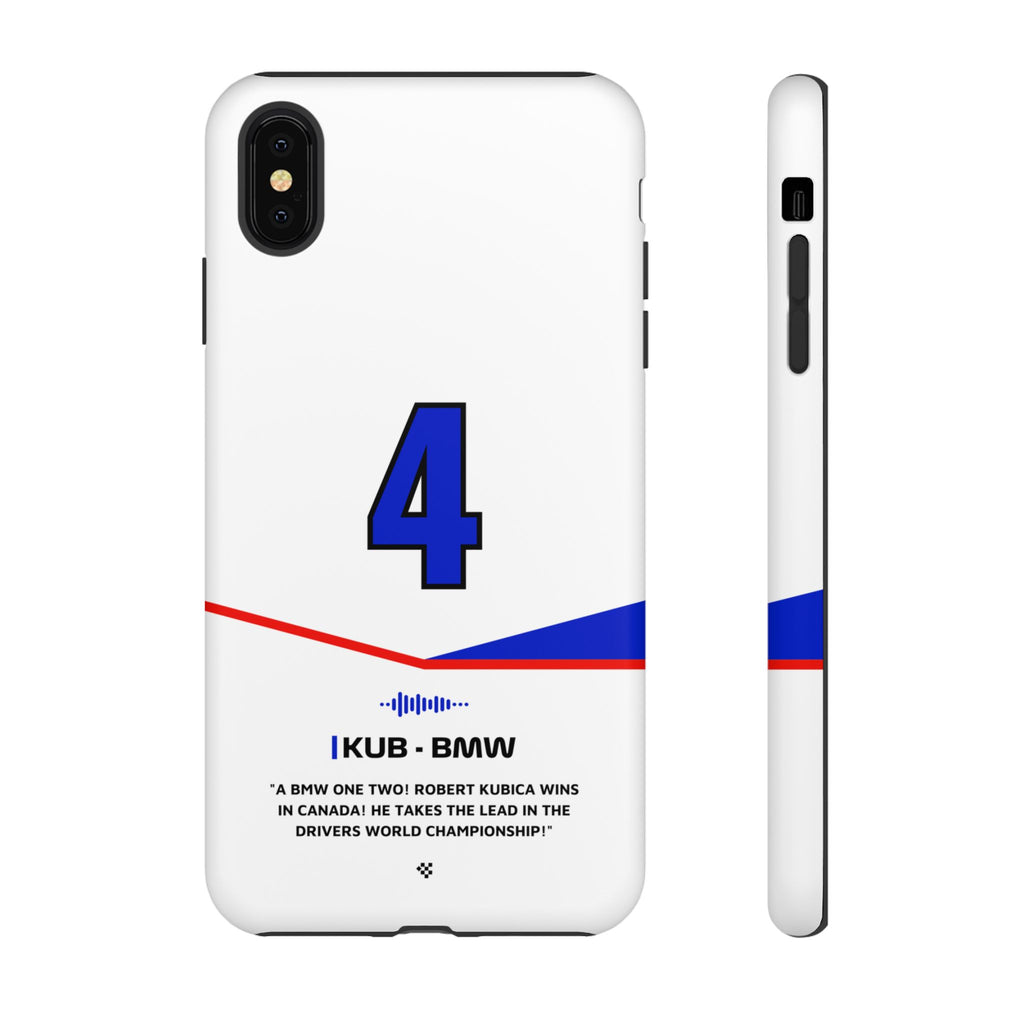 Make sure his legacy persists with the exclusive Robert Kubica F1 Legend Phone Case. It's the perfect accessory for every passionate Formula 1 and Kubica fan. Featuring Robert's iconic #4 race number and the bold 2008 BMW-Sauber team colors, this stylish phone case brings racing energy straight to your hand.