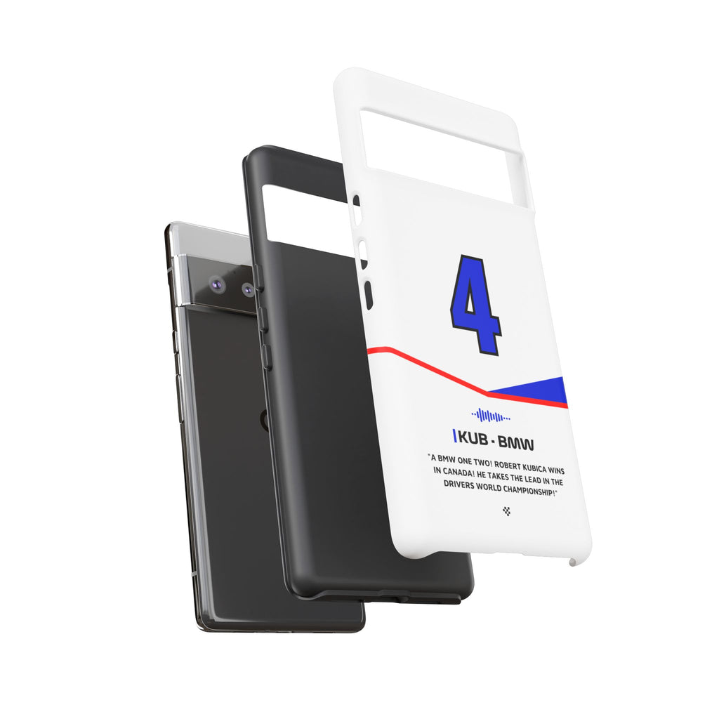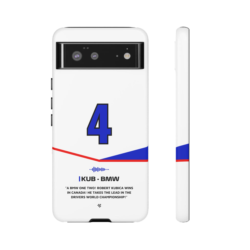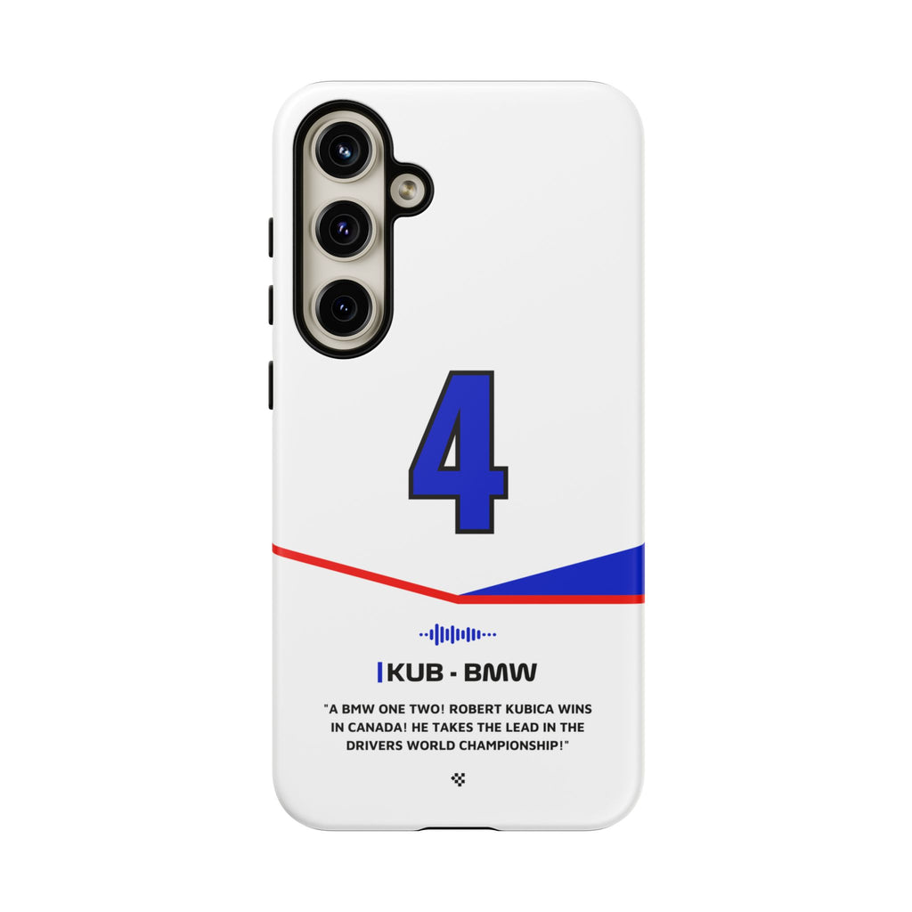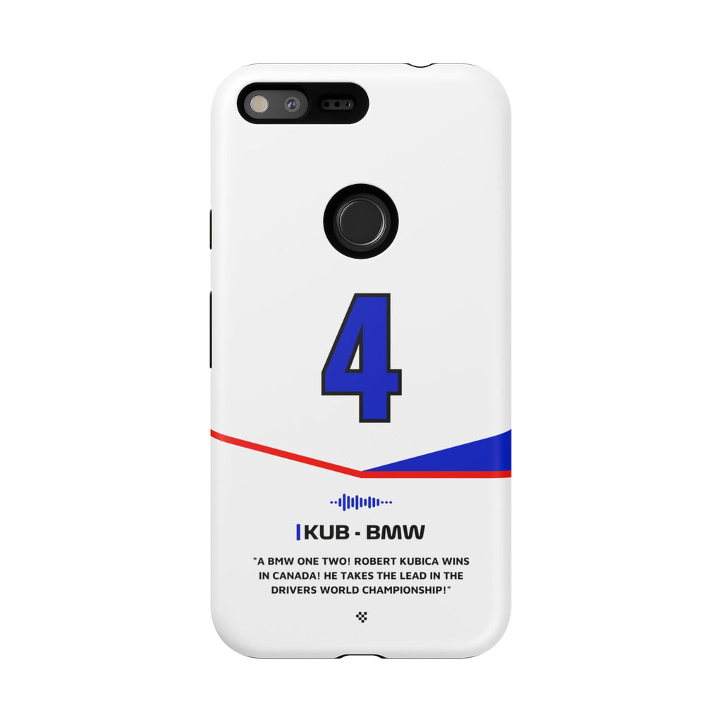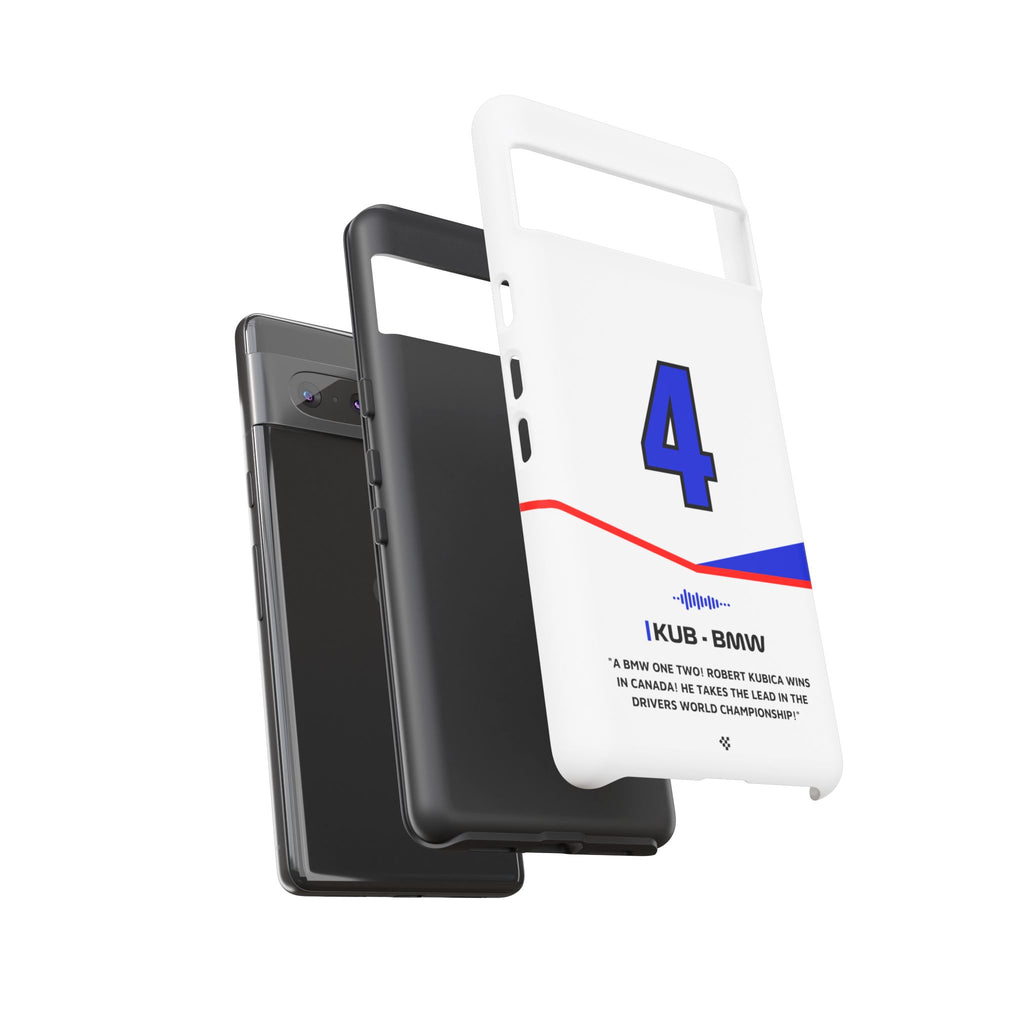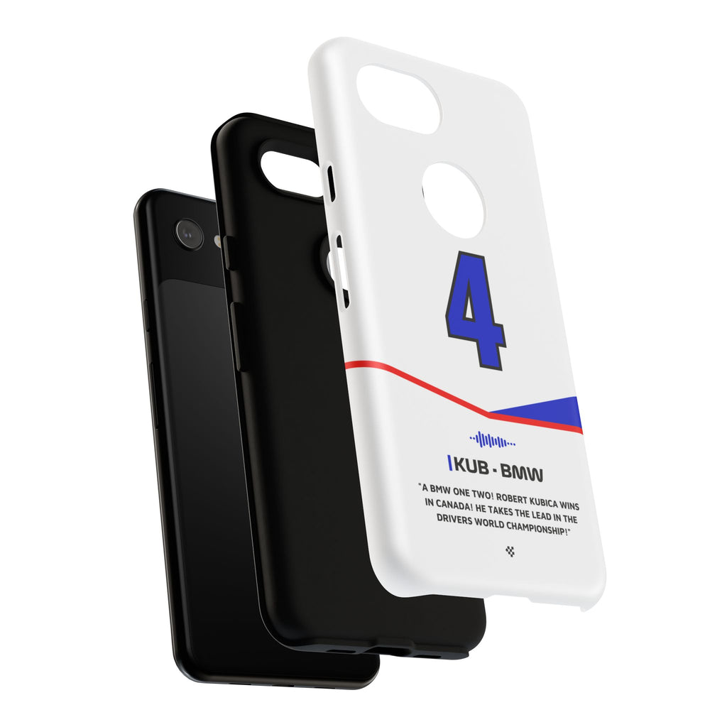 Make sure his legacy persists with the exclusive Robert Kubica F1 Legend Phone Case. It's the perfect accessory for every passionate Formula 1 and Kubica fan. Featuring Robert's iconic #4 race number and the bold 2008 BMW-Sauber team colors, this stylish phone case brings racing energy straight to your hand.