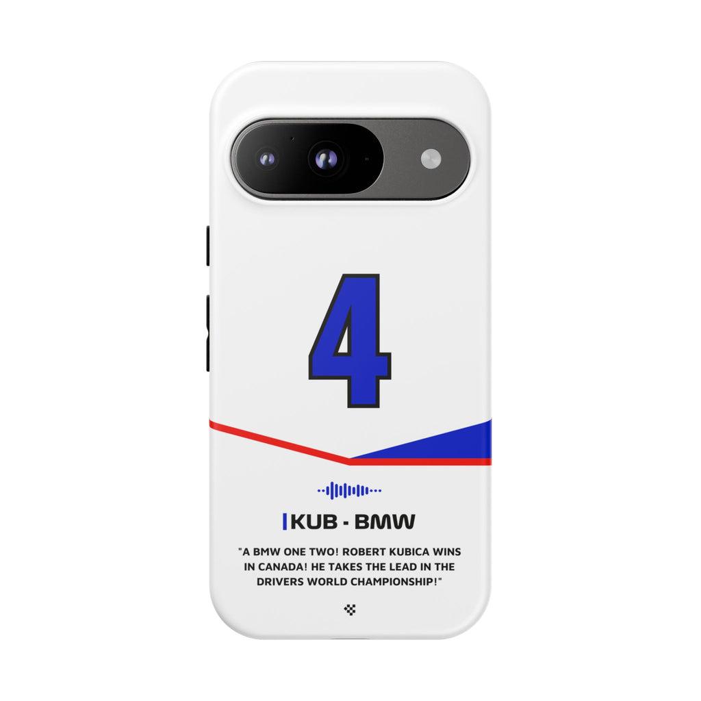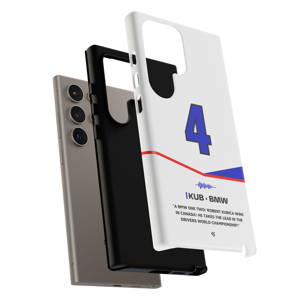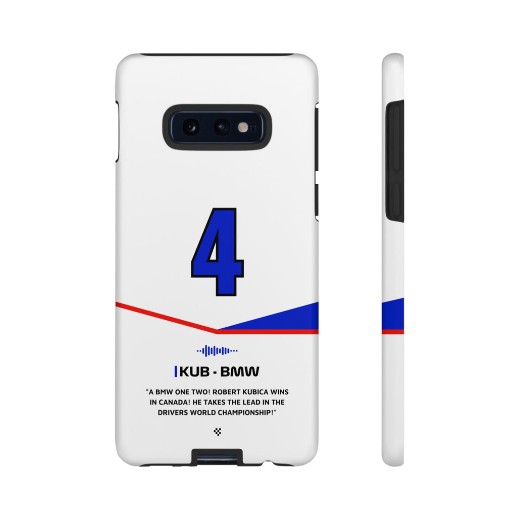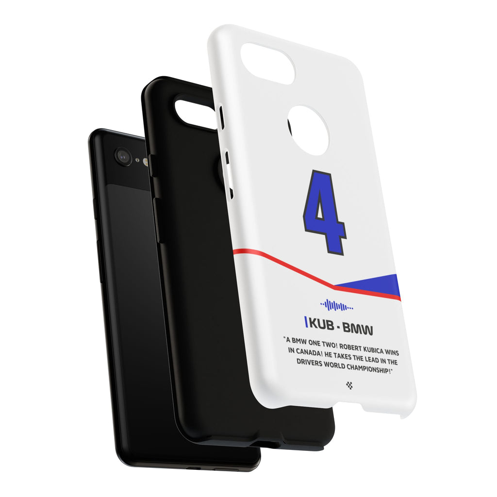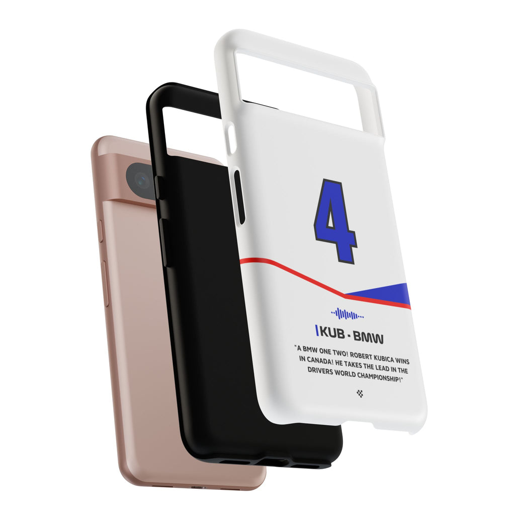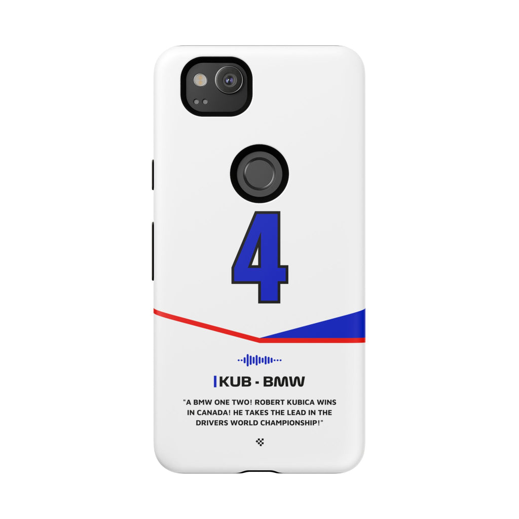 Make sure his legacy persists with the exclusive Robert Kubica F1 Legend Phone Case. It's the perfect accessory for every passionate Formula 1 and Kubica fan. Featuring Robert's iconic #4 race number and the bold 2008 BMW-Sauber team colors, this stylish phone case brings racing energy straight to your hand.