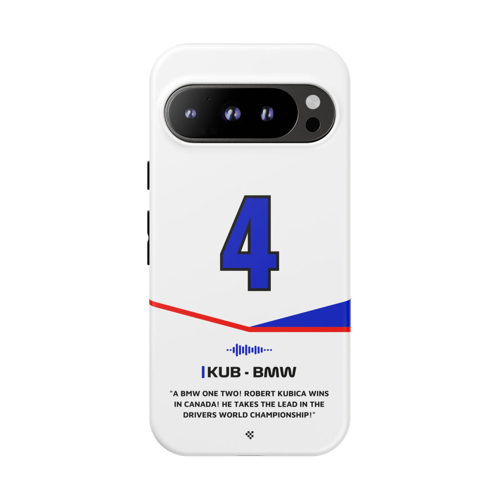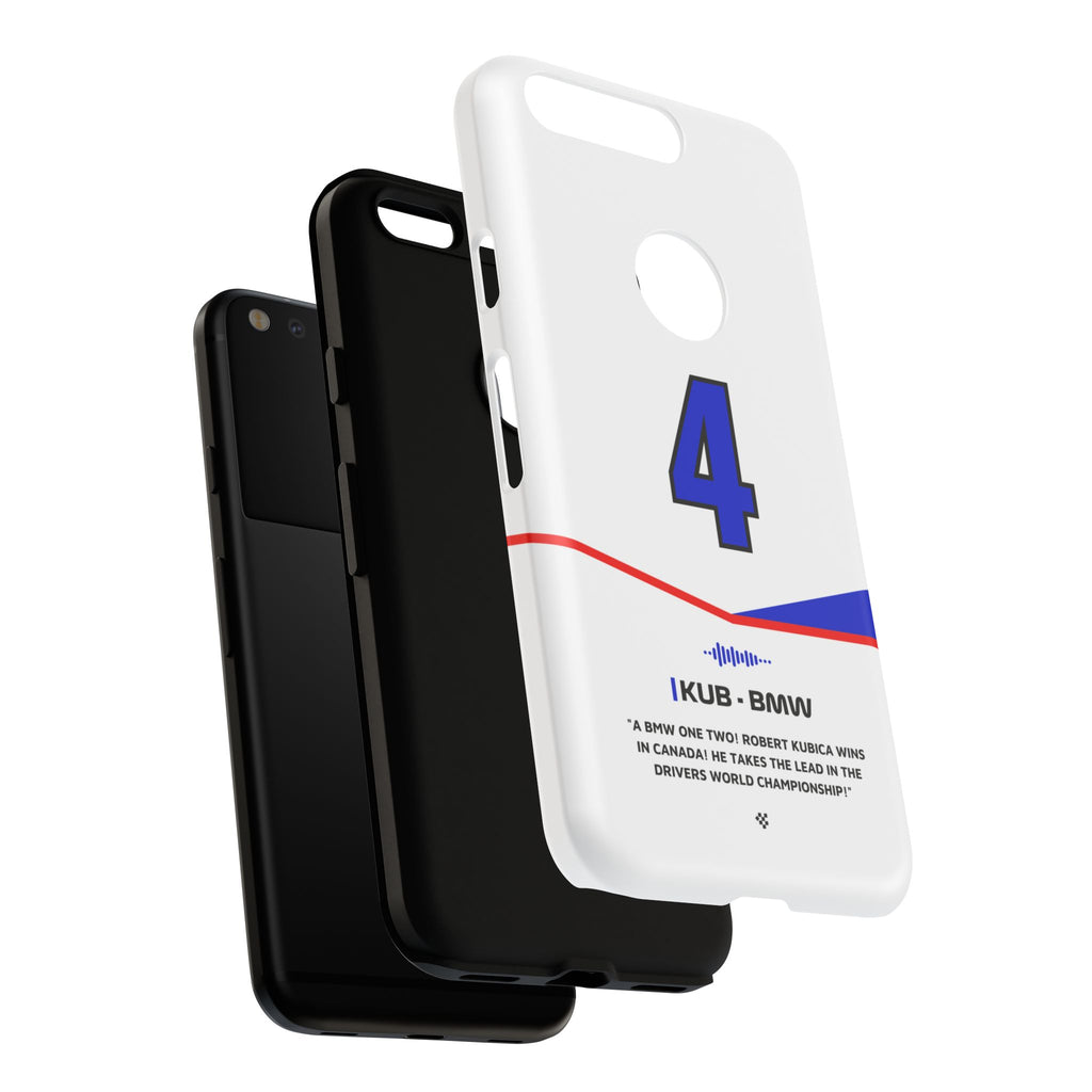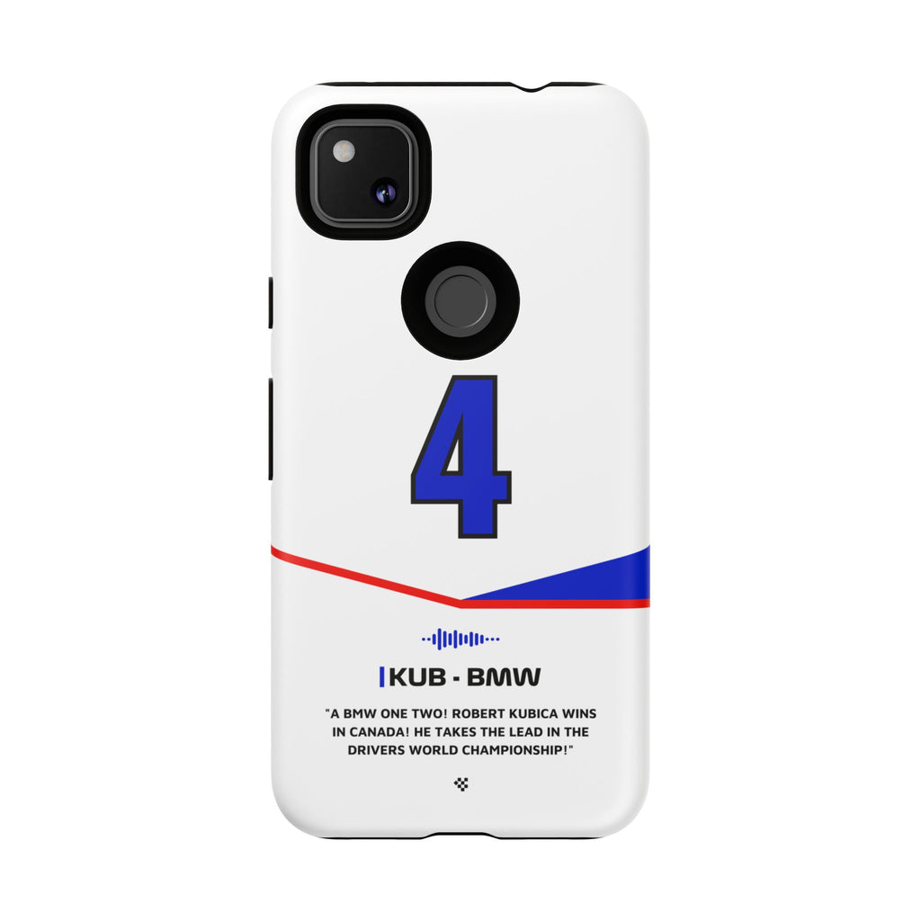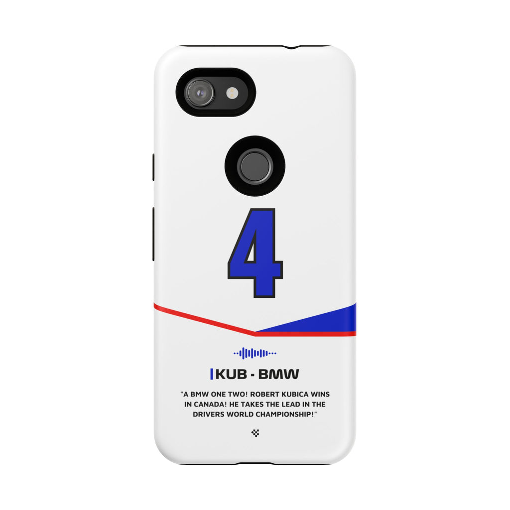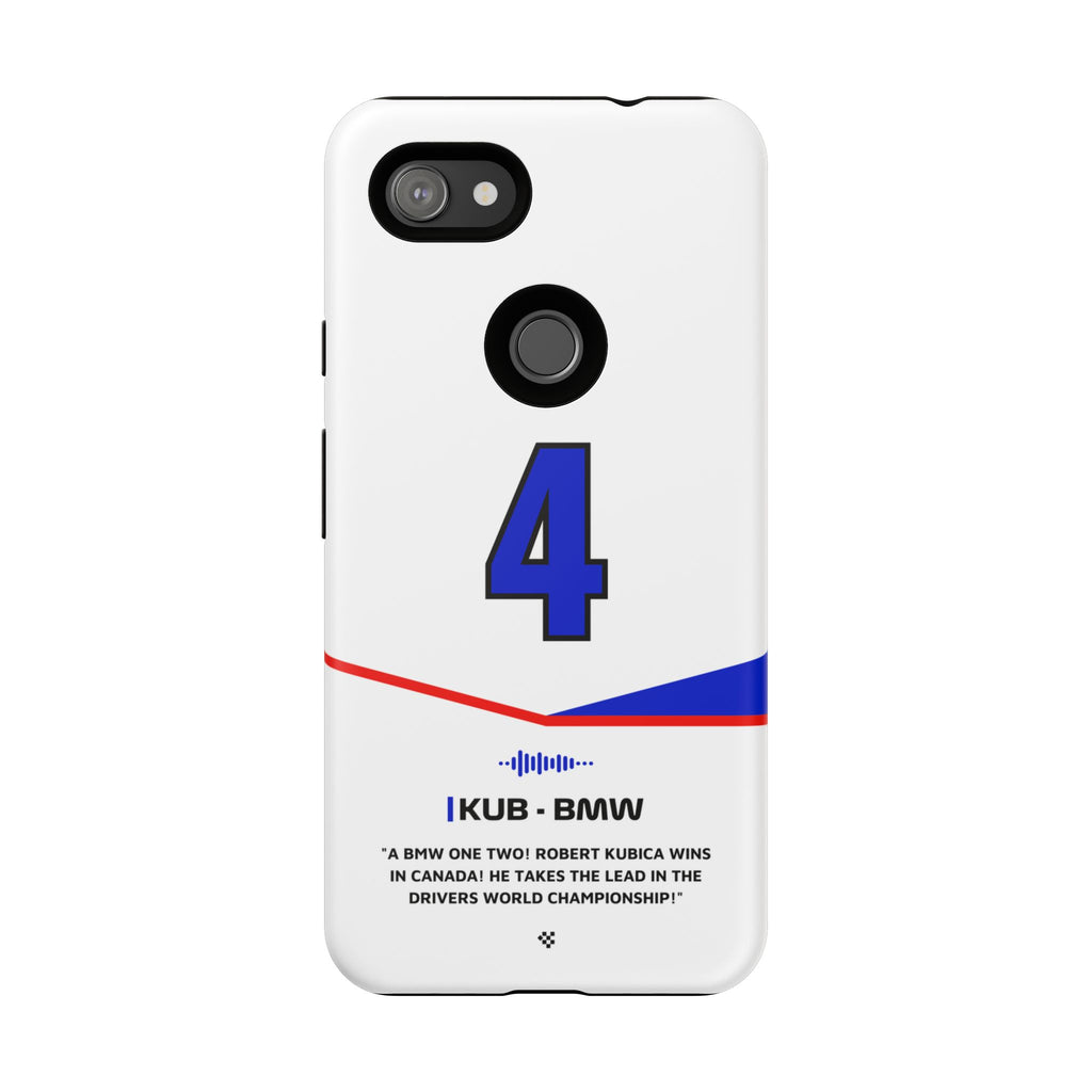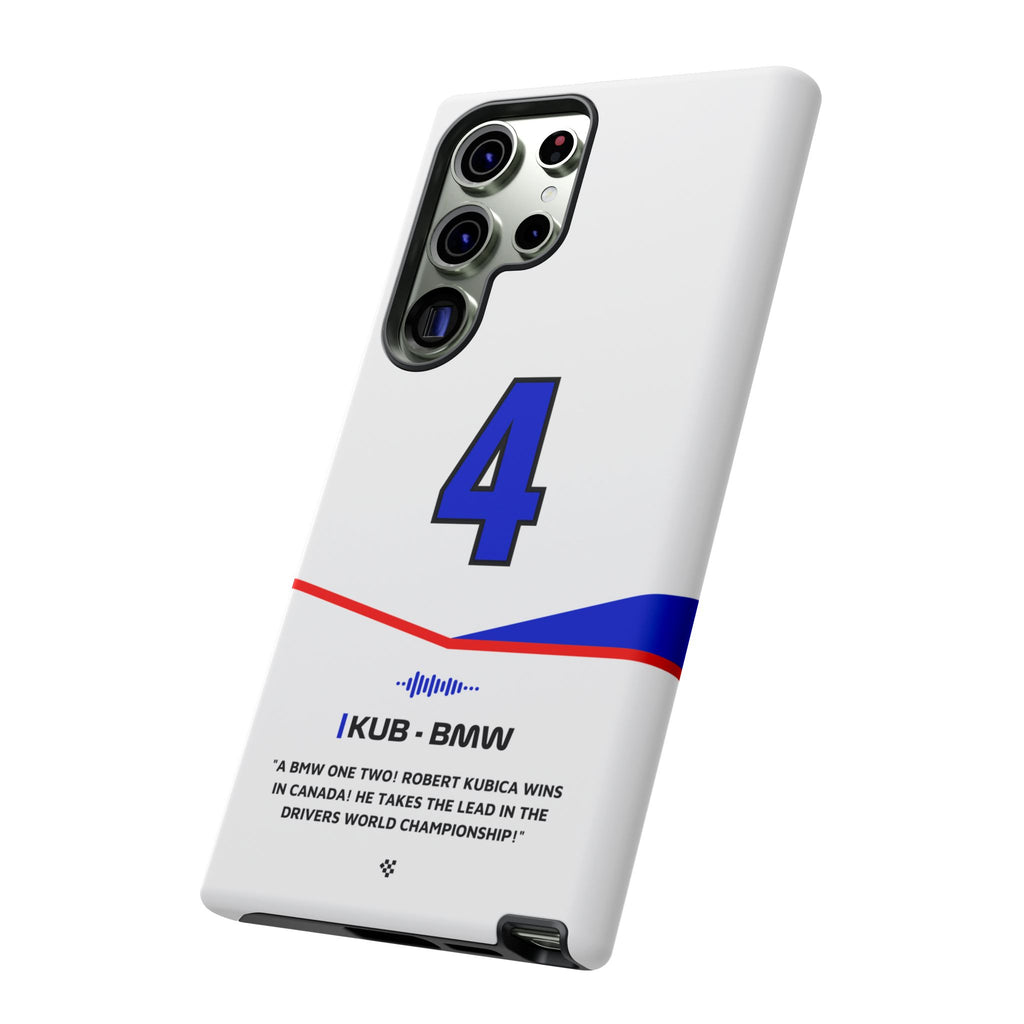 Make sure his legacy persists with the exclusive Robert Kubica F1 Legend Phone Case. It's the perfect accessory for every passionate Formula 1 and Kubica fan. Featuring Robert's iconic #4 race number and the bold 2008 BMW-Sauber team colors, this stylish phone case brings racing energy straight to your hand.