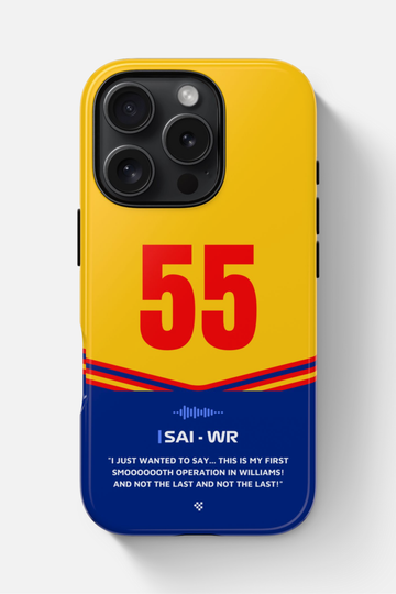 Support your favorite F1 driver with the exclusive Carlos Sainz F1 2025 Helmet Phone Case. It's the perfect accessory for every passionate Formula 1 and Sainz fan. Featuring Carlos's iconic #55 race number and his bold 2025 helmet colors, this stylish phone case brings racing energy straight to your hand.